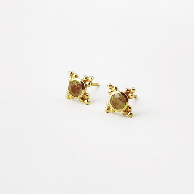 ゴールデンルチルクォーツが地金のカラーと、マッチして高級感のあるピアスです。
