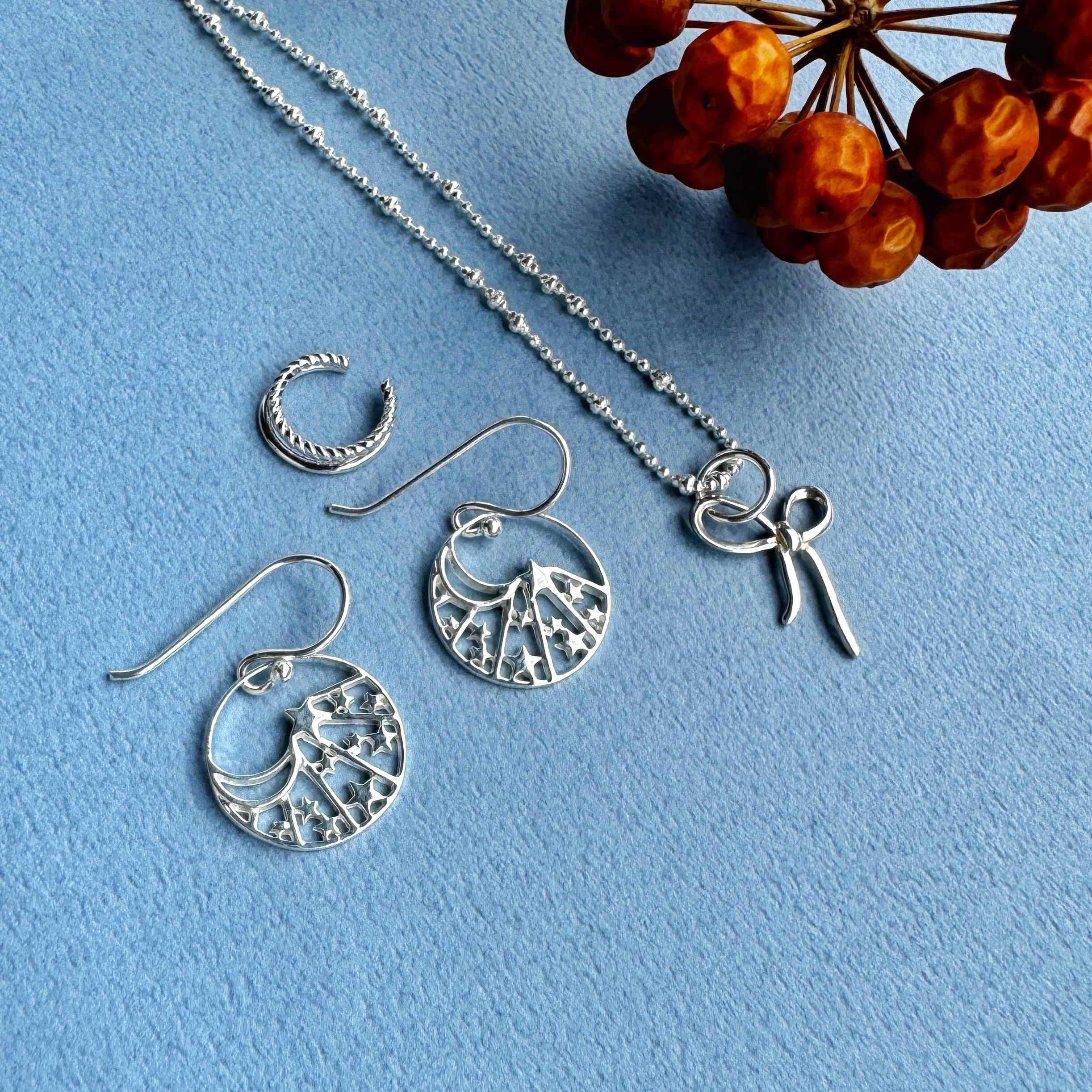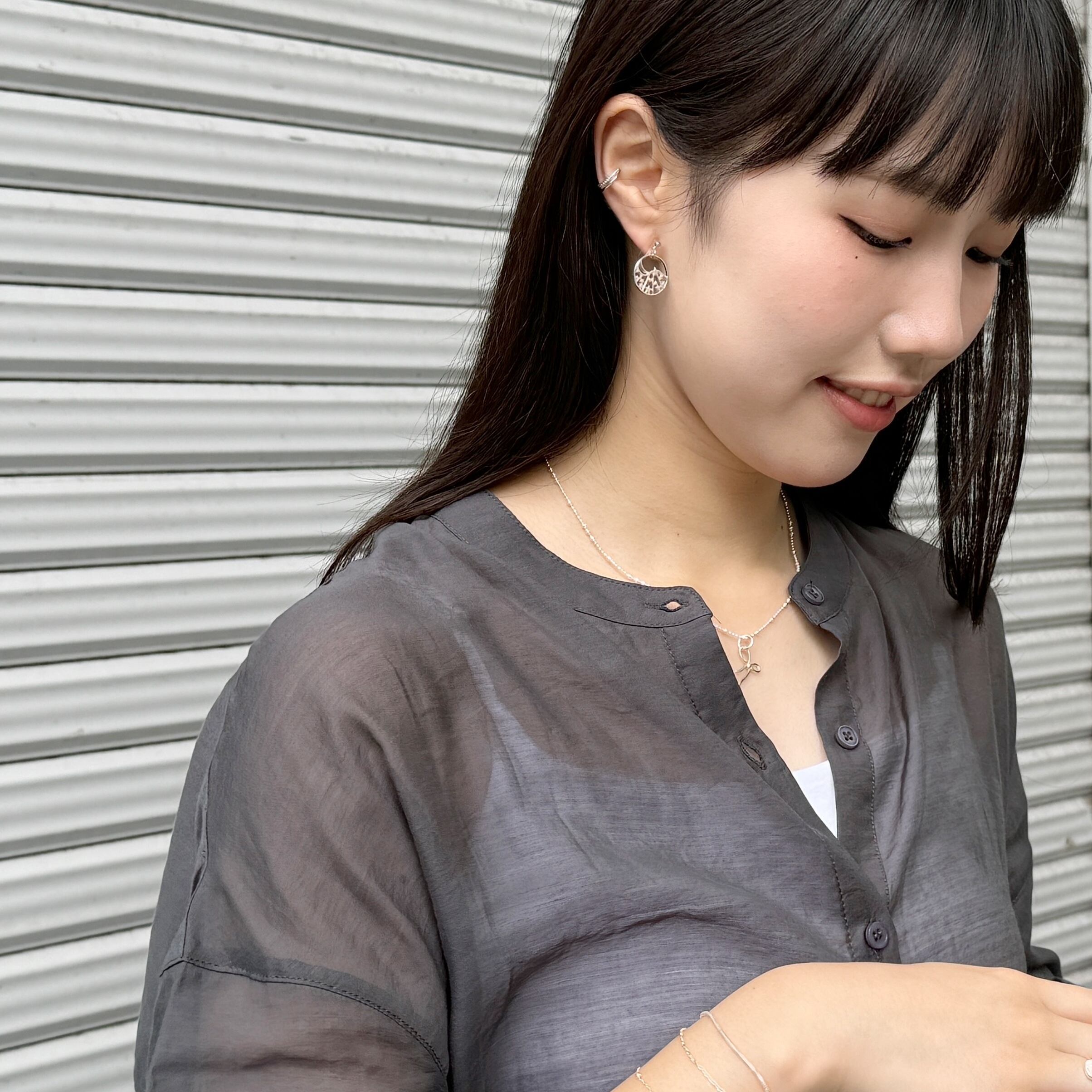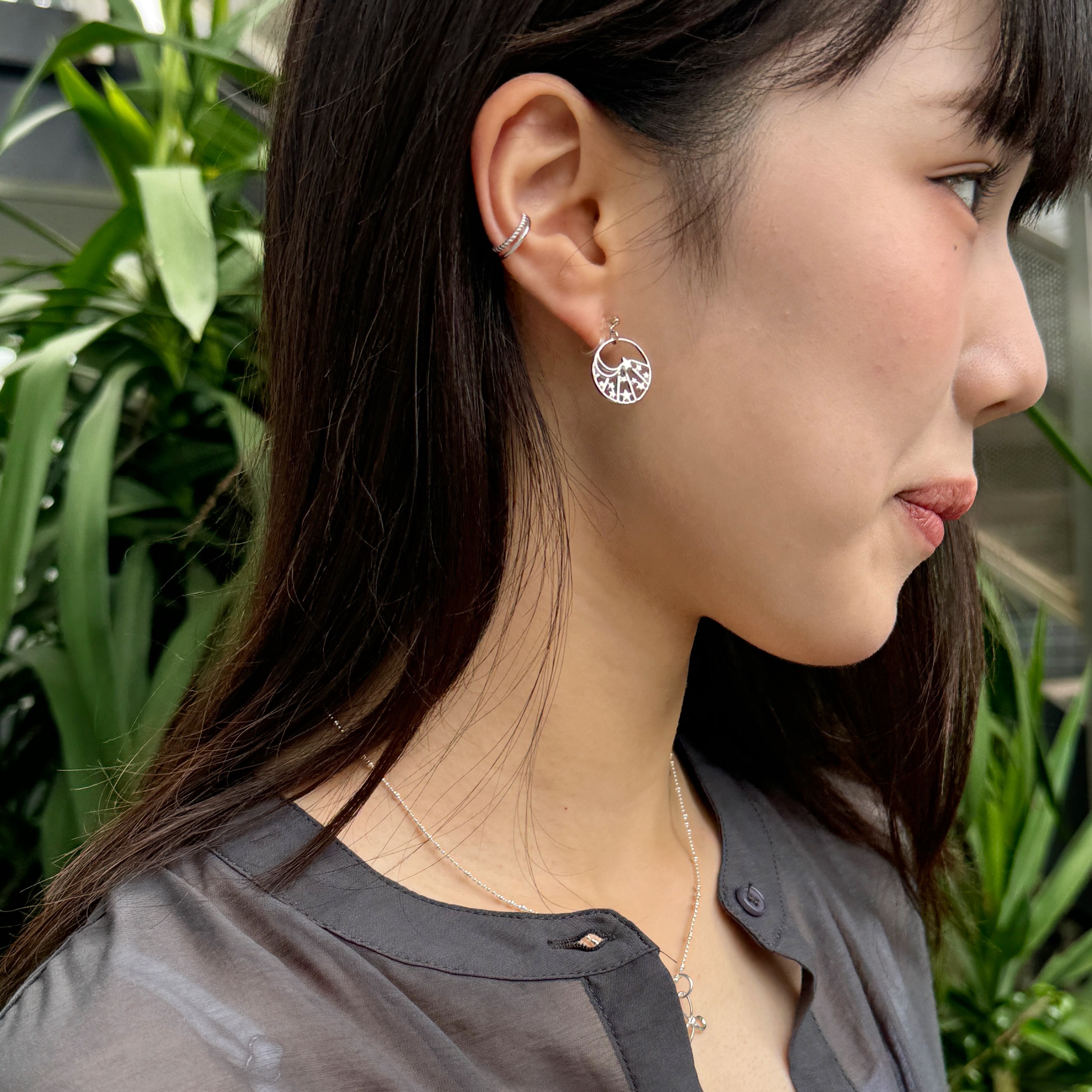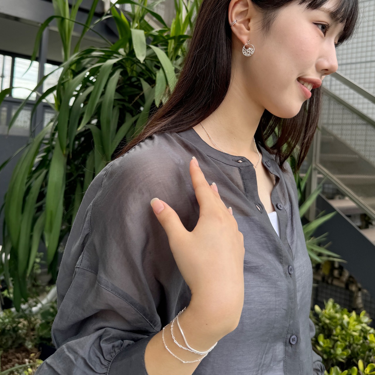 ナチュラルなモチーフのデザインでありながら、シルバーの質感のみなので都会的な印象もありますのでオフィスワークの方にも取り入れて頂きやすいデザインです。