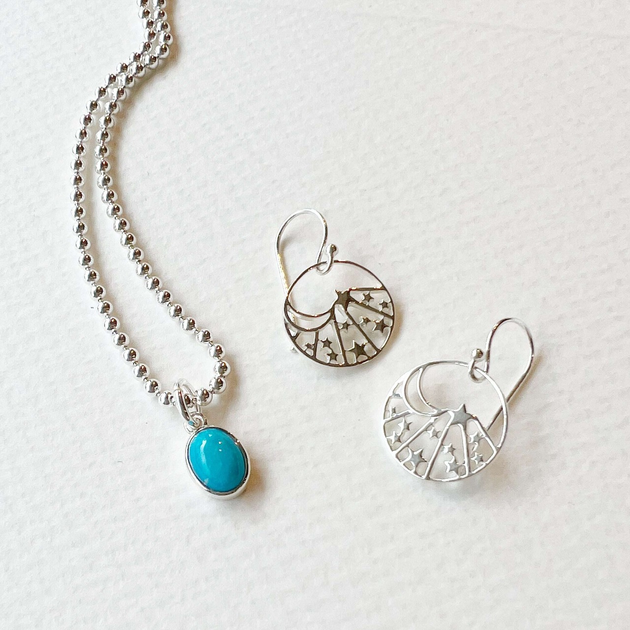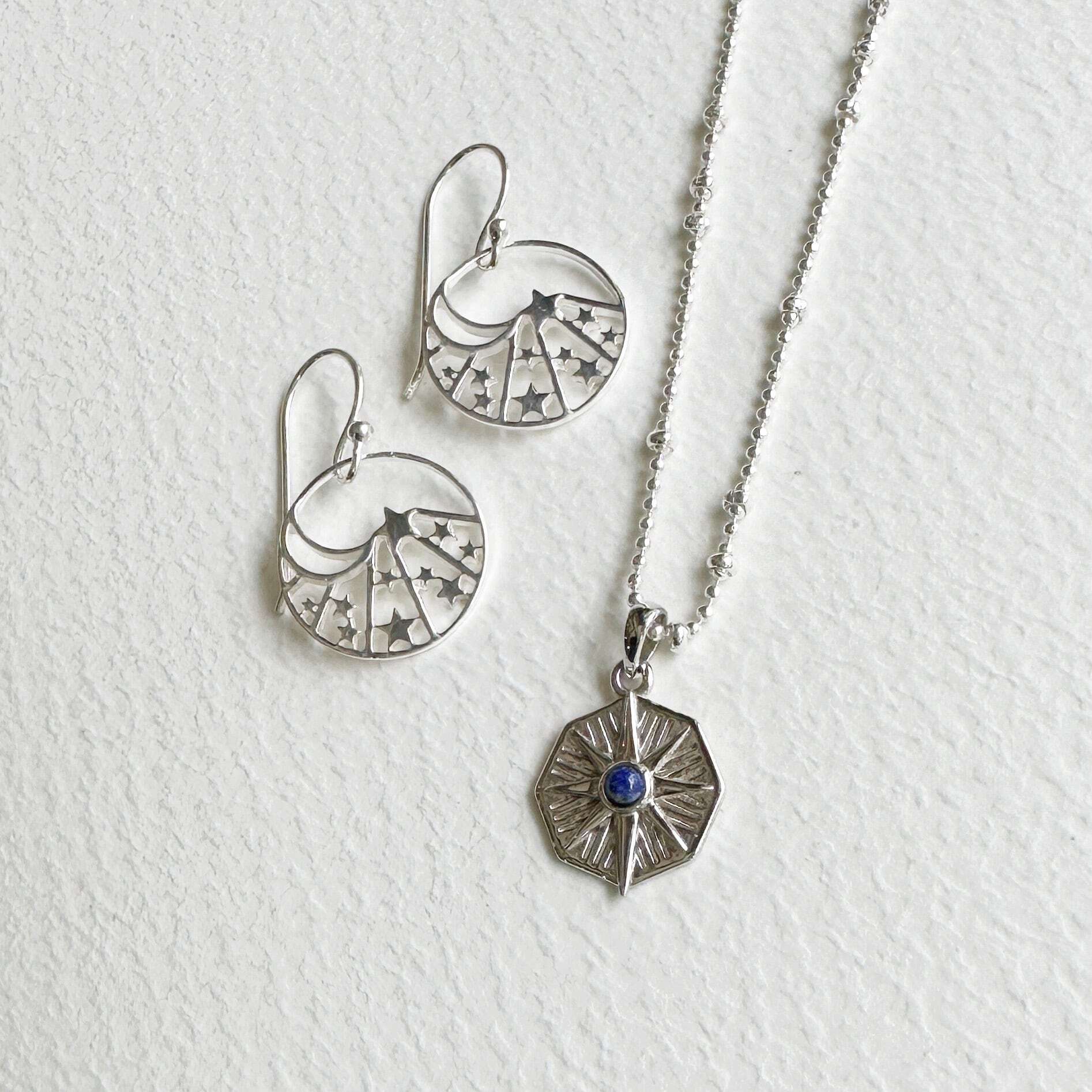 天然石と並べると宇宙を感じさせてくれるピアスです。