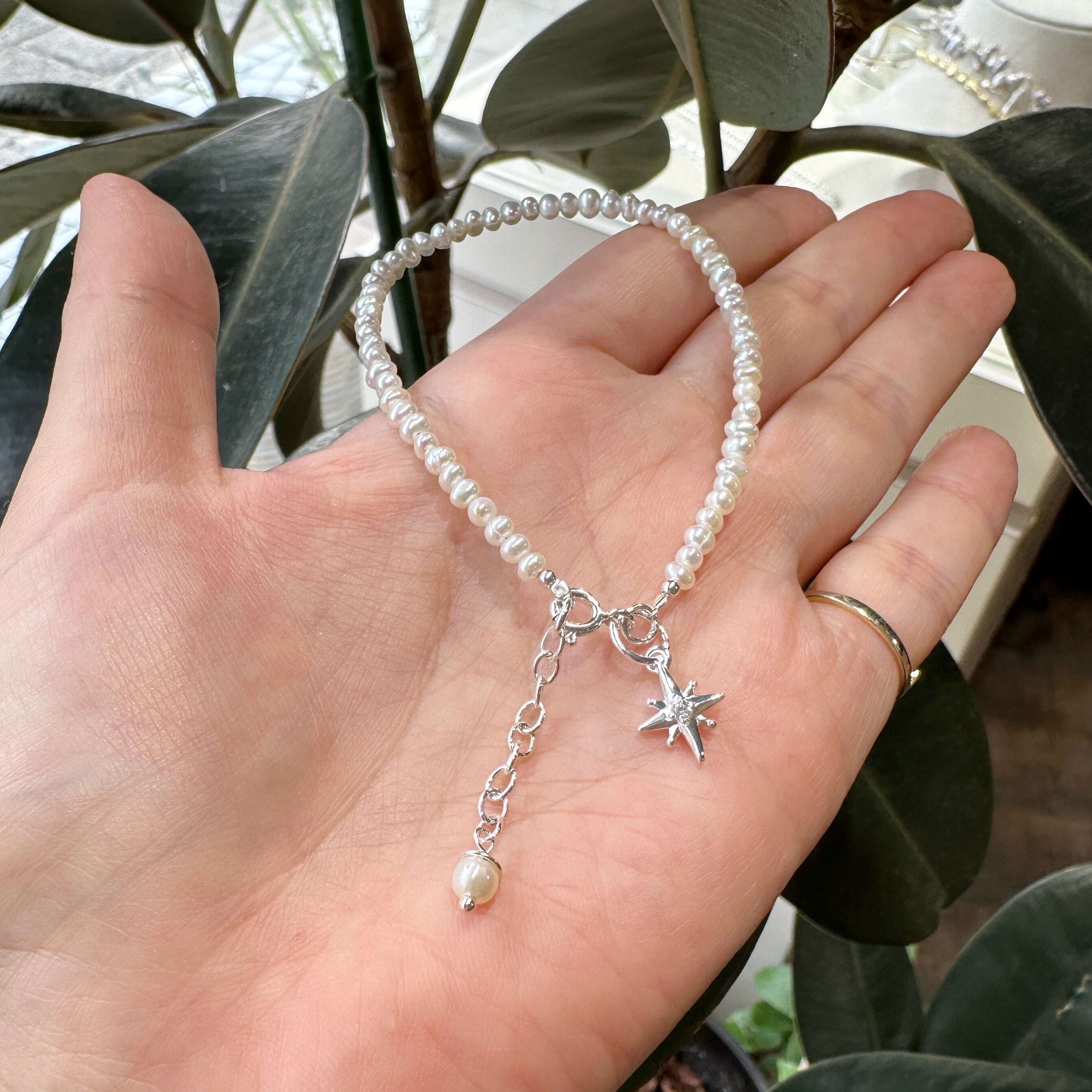 小さな淡水パールでブレスレットを作りました.