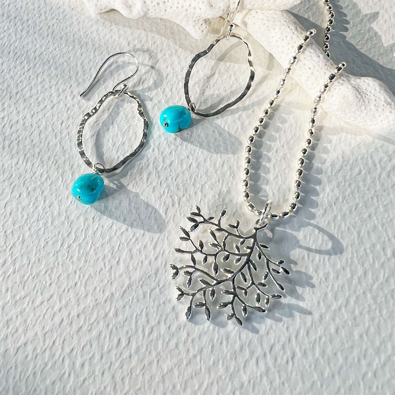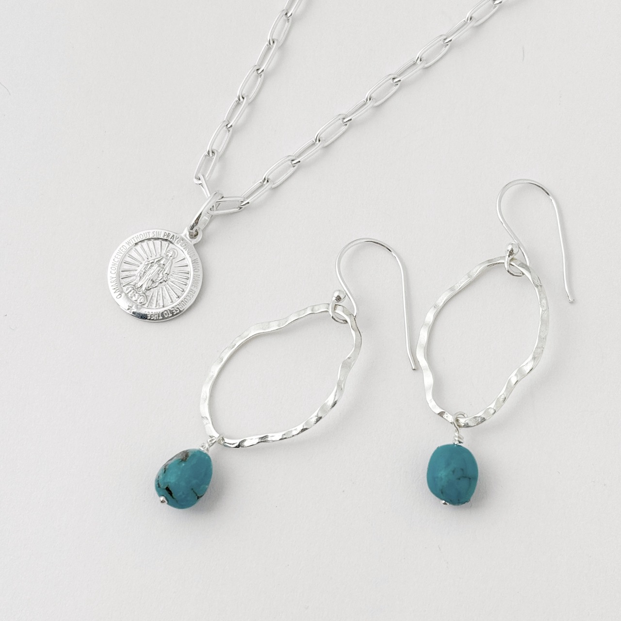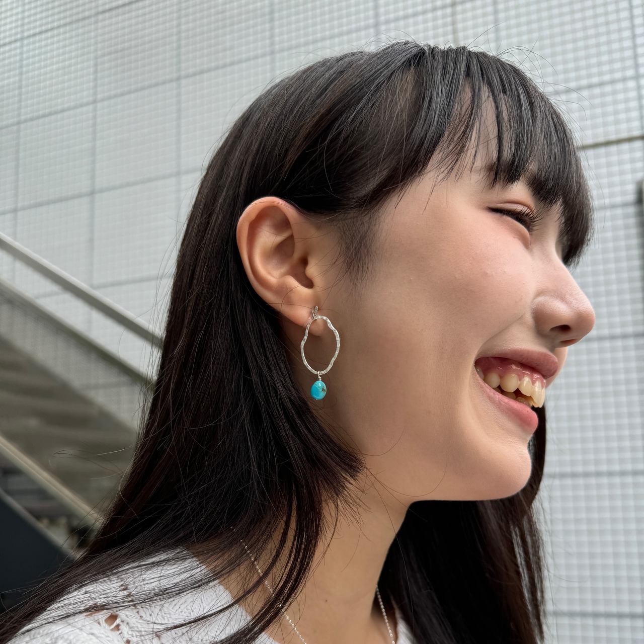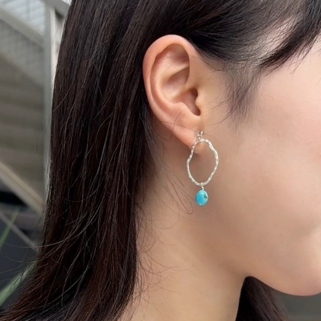 個性的なシルバーパーツにコロンと丸い発色の良いターコイズを使用して作りました。