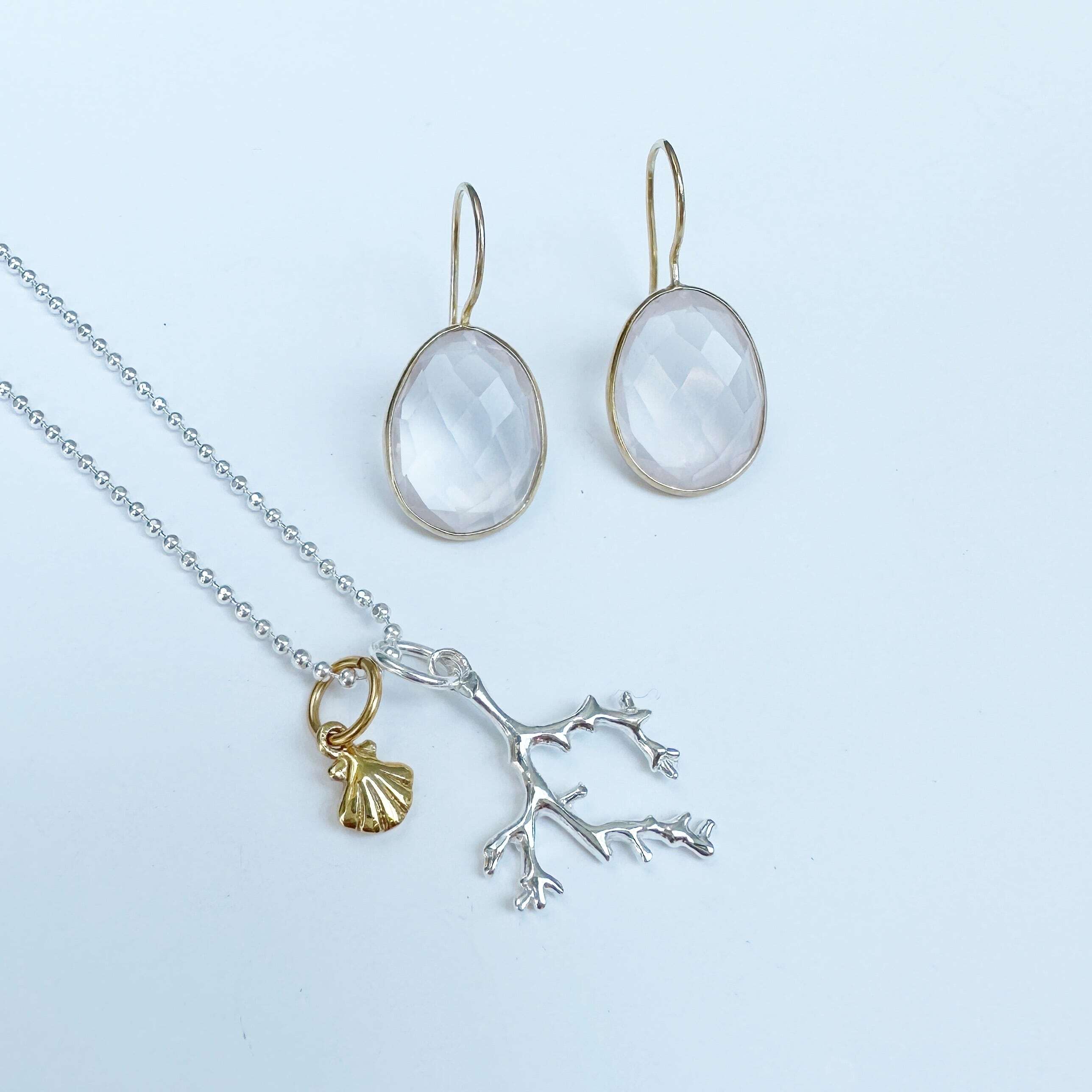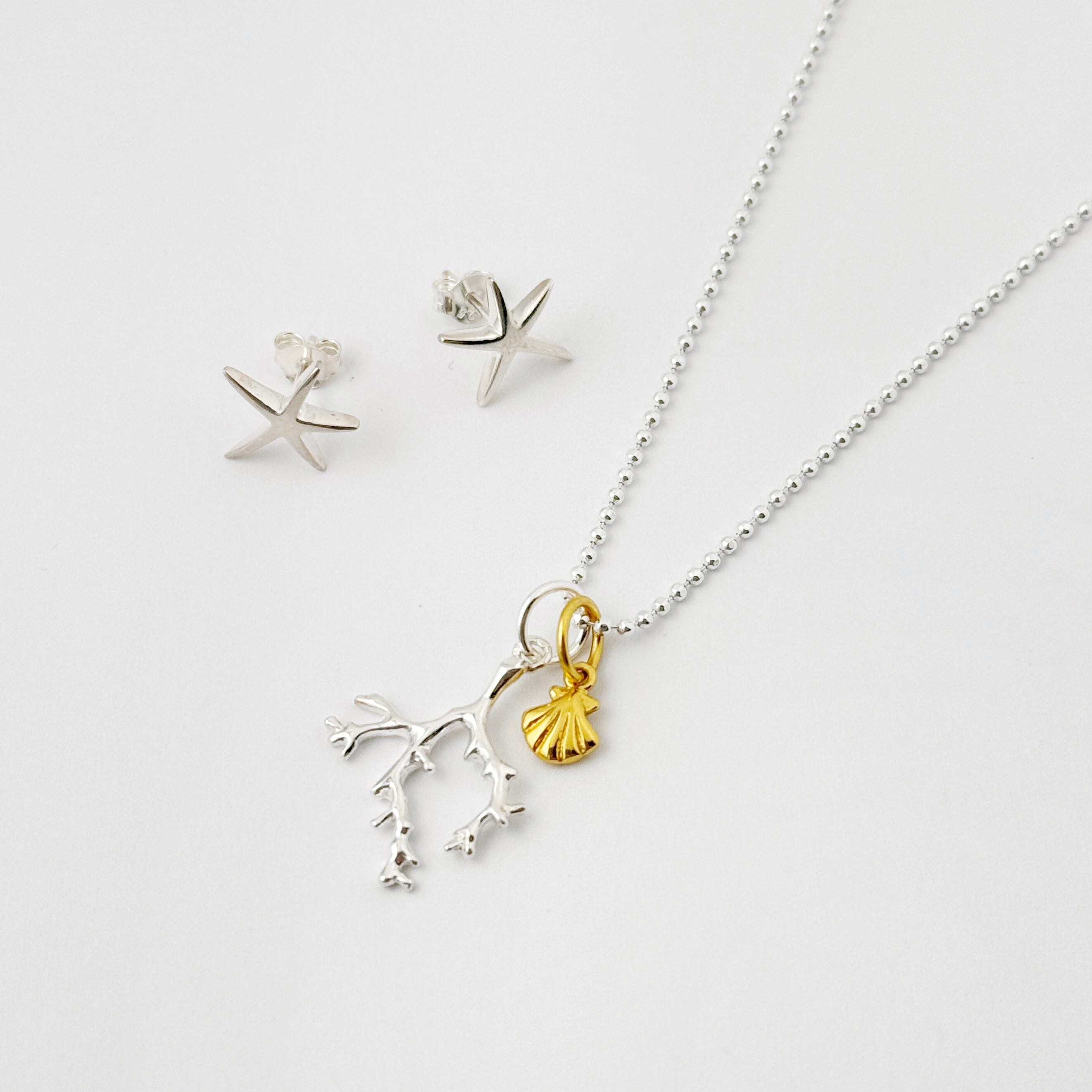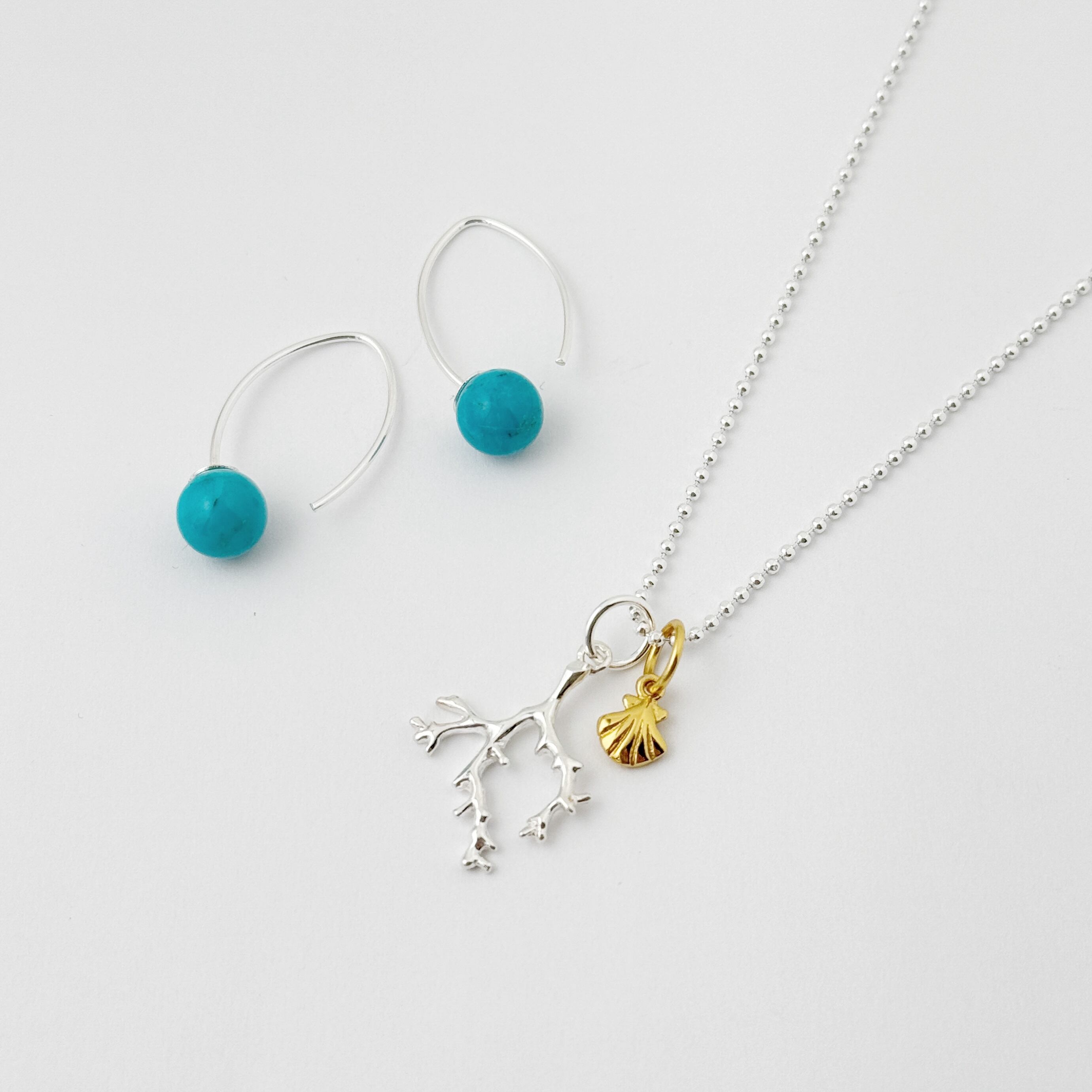 先端部分まで細かくデザインされたサンゴと、Gold Coatingのリトルシェルがセットになったネックレスです。マレアオリジナルです。