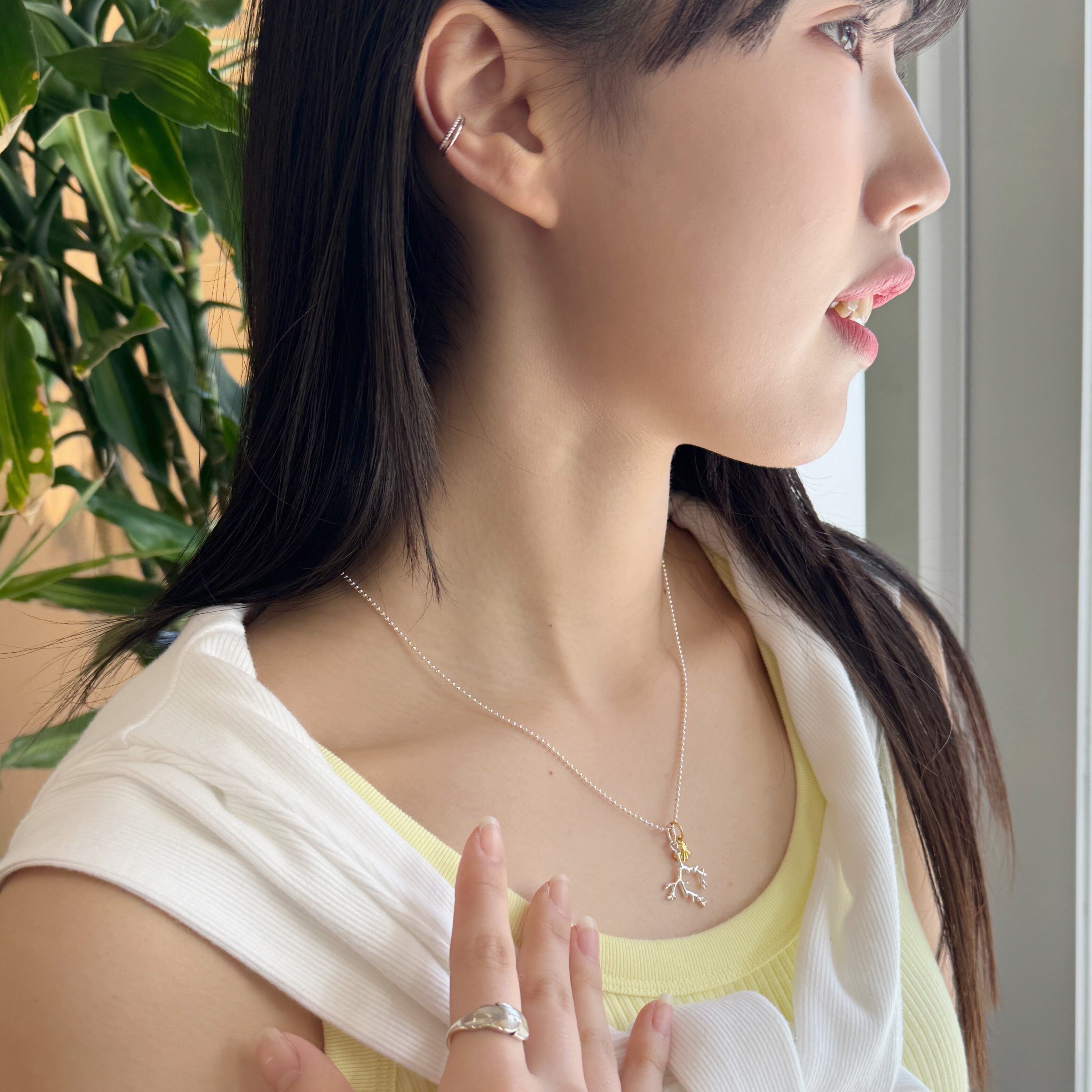 シルバーとゴールドのミックスなので、他のジュエリーもミックスコーデを楽しんでくださいね。