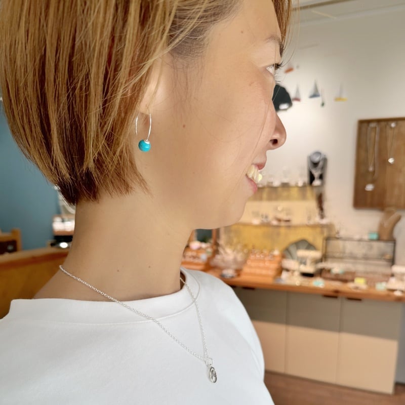 2003年のオープンからベストセラーとなっている横顔 ビューティー ターコイズ ピアス 。