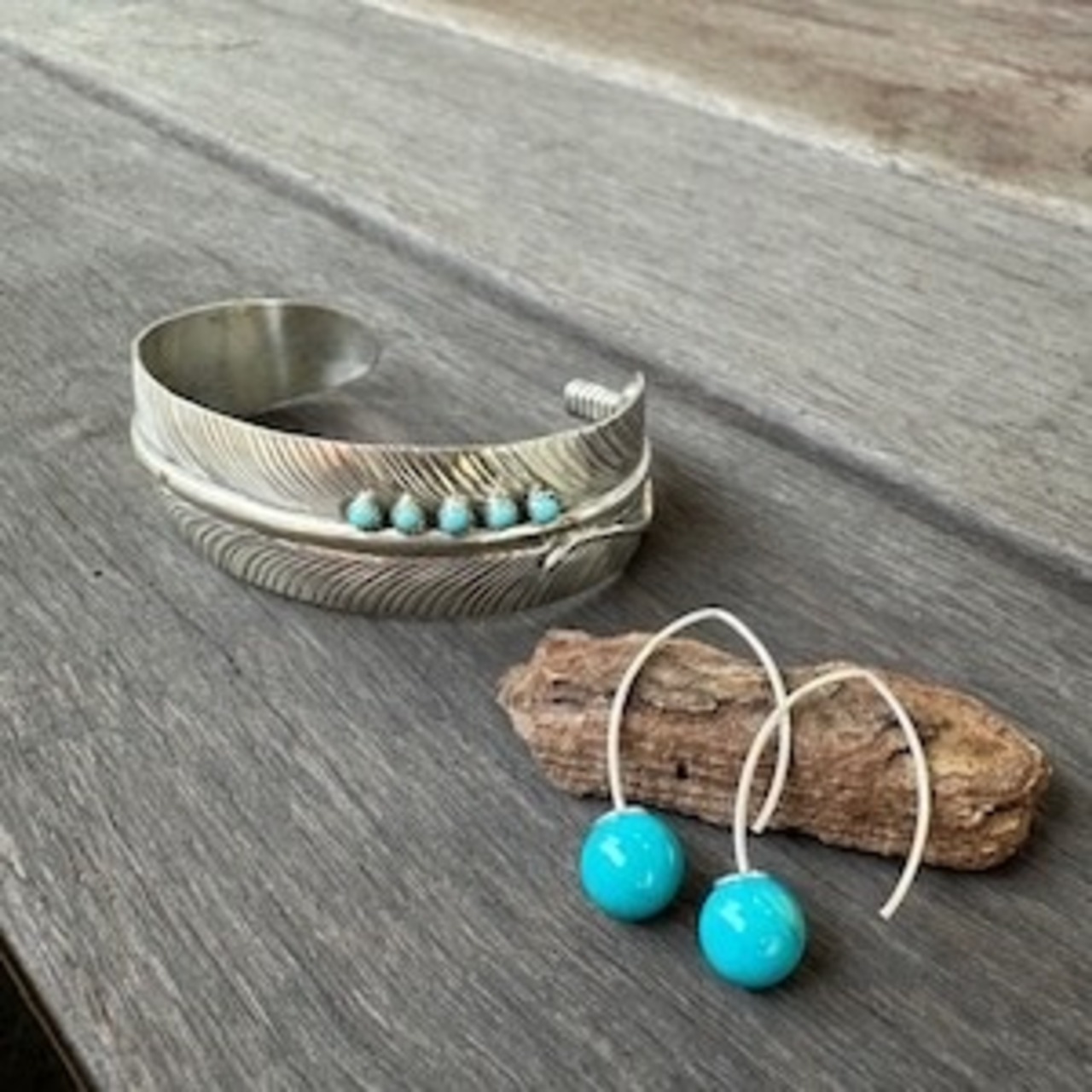 天然石のターコイズと変色が少ない、アレルギー反応が出にくい銀の含有率92.5%のシルバー925を組み合わせた勇気をくれるスタイリッシュなピアス。