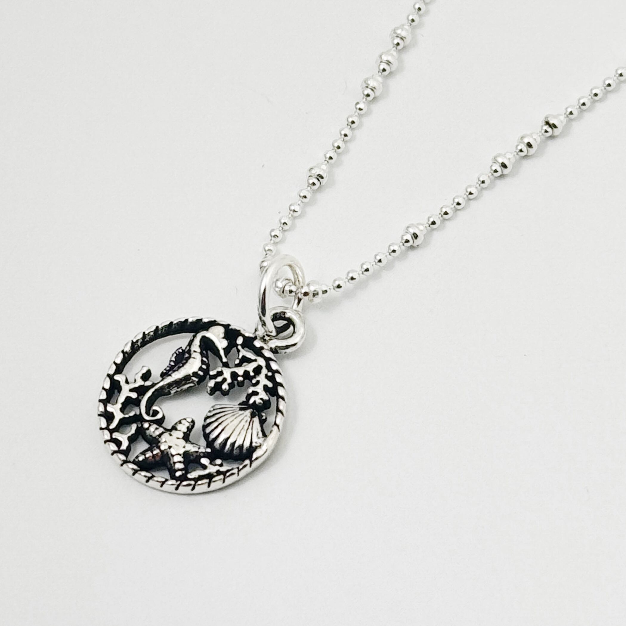 タツノオトシゴ、シェル、スターフィッシュ、サンゴ…みんな大好きなモチーフが一つの輪の中に閉じ込められています。