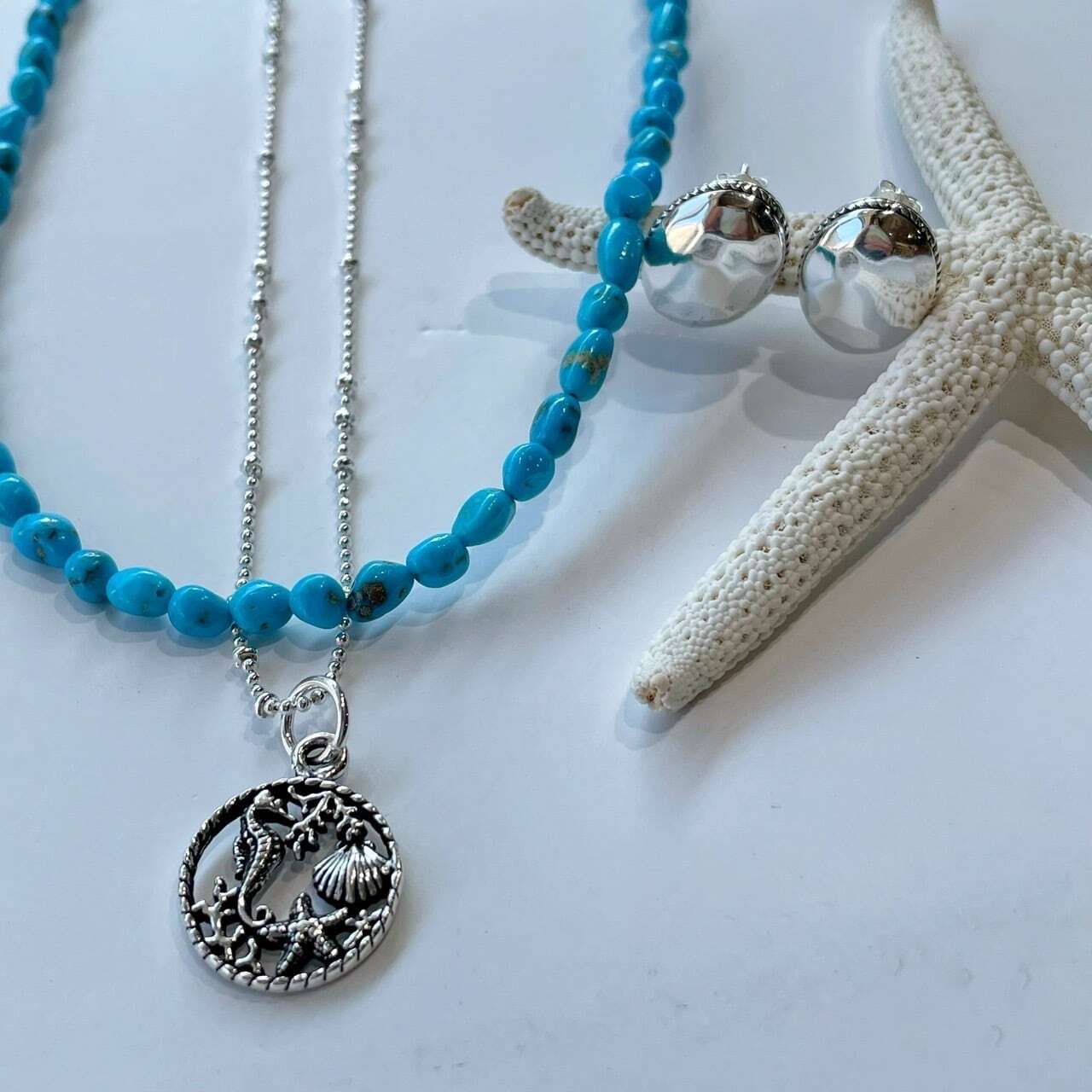夏が楽しみになるアイテムですが、オキシダイズドシルバーが落ち着いた雰囲気を出してくれるので、一年中身につけてお楽しみいただけます。