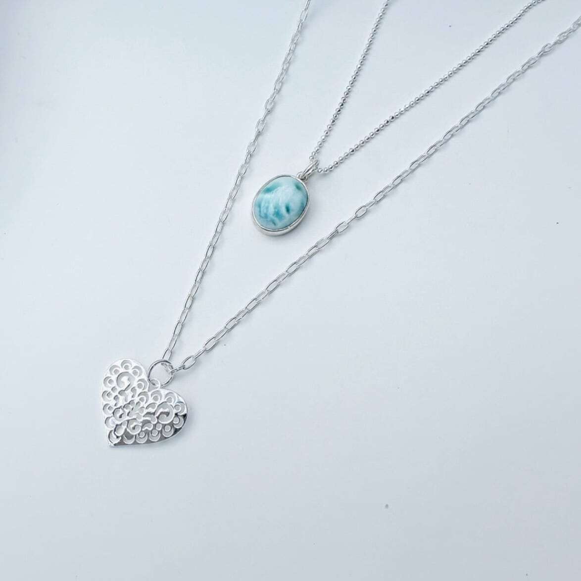 透かしの雰囲気に合わせて、抜け感のあるロングアズキチェーンにセットしました。