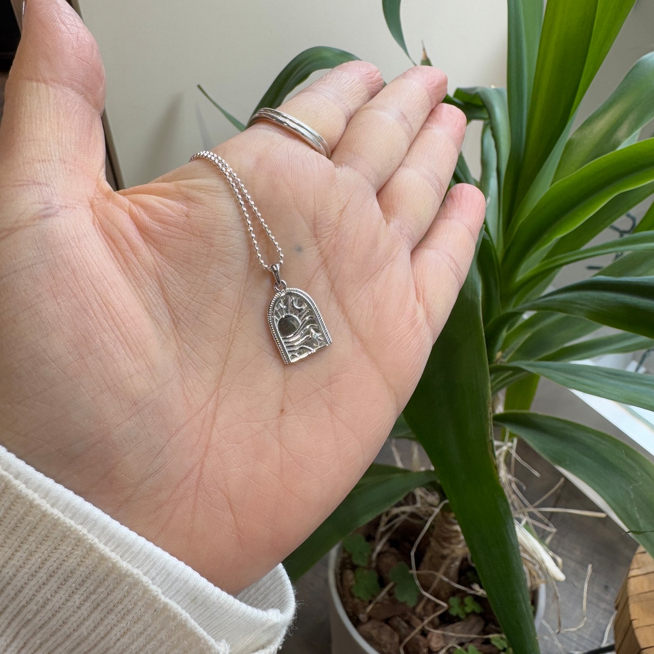 まるで、窓辺から見えた景色のようなネックレスTOPです。