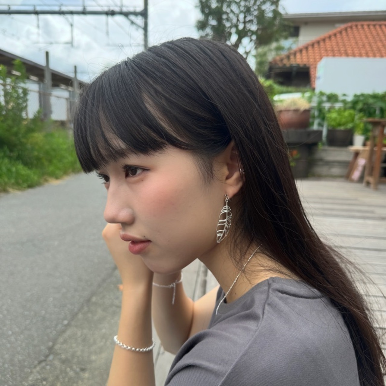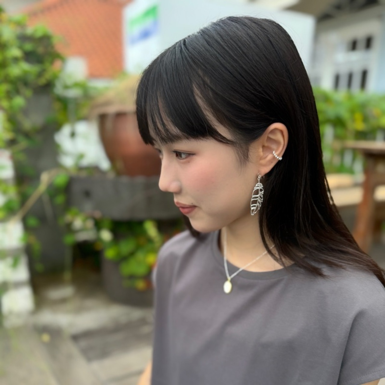 首元を綺麗に見せてくれるロングピアスです