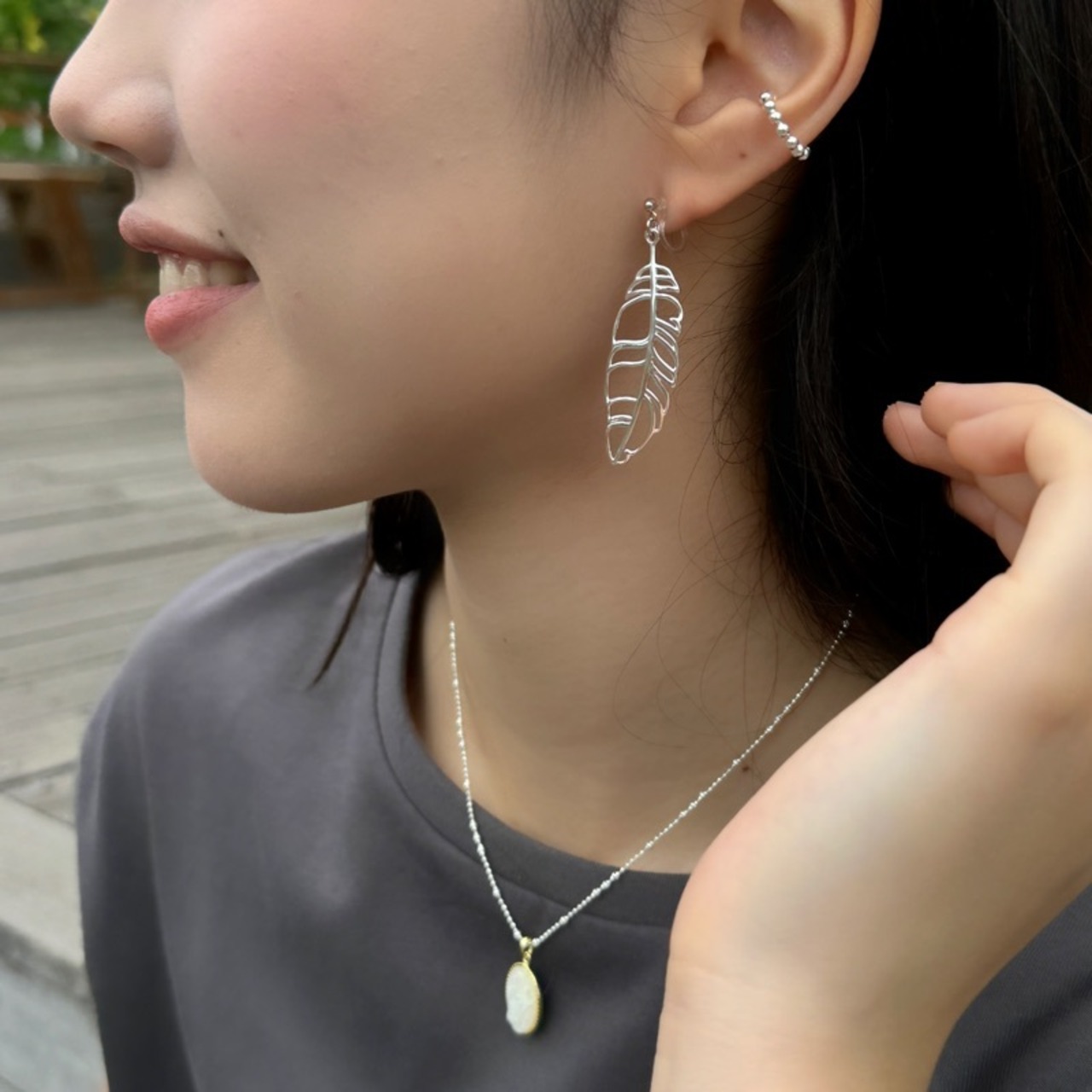 天然石が入ったネックレスともバッチリコーディネートできますし、