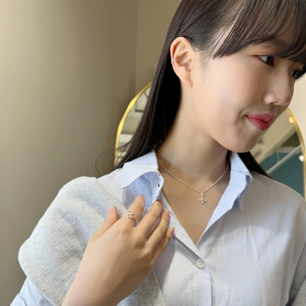 もしピアスホールを開けても、いろんなジュエリーと組み合わせも楽しめるデザインなので、
