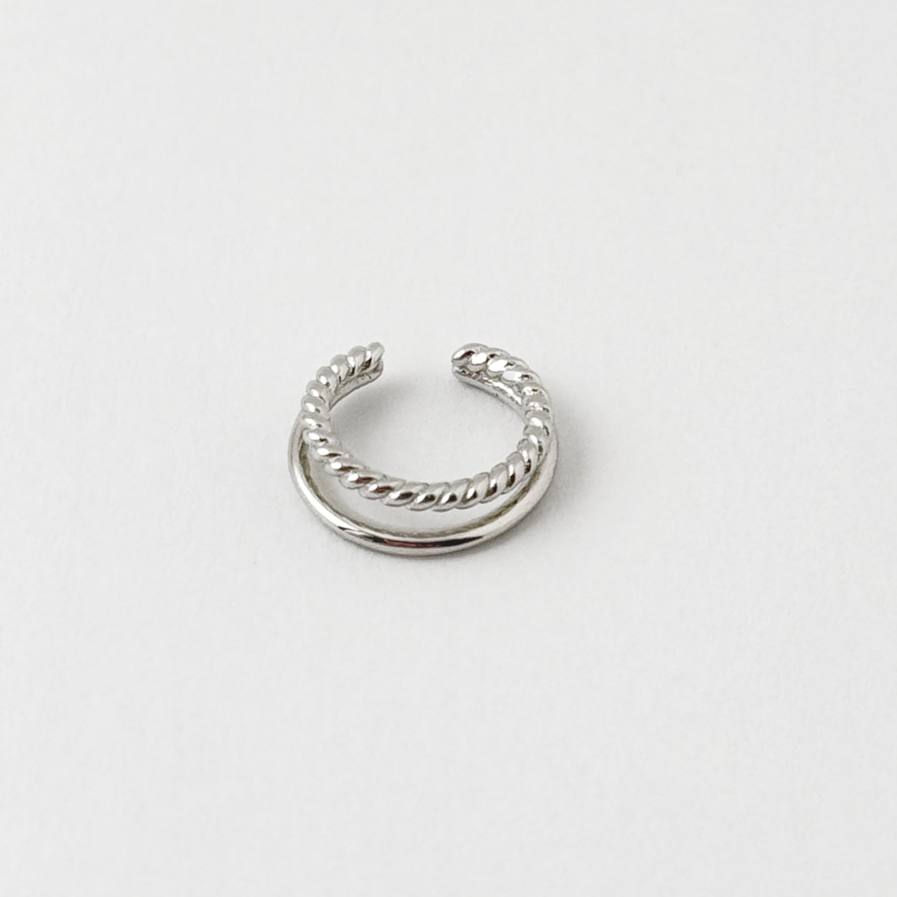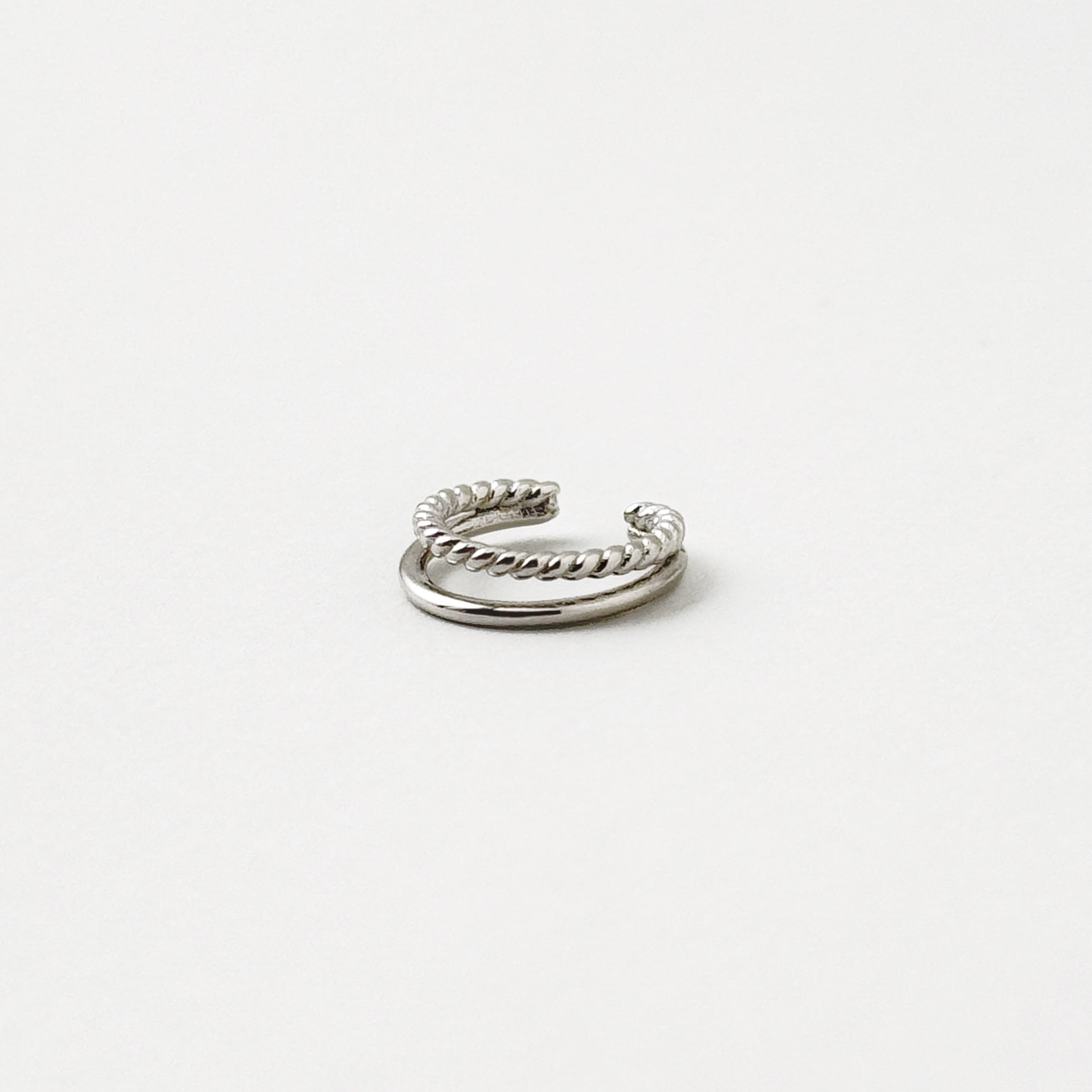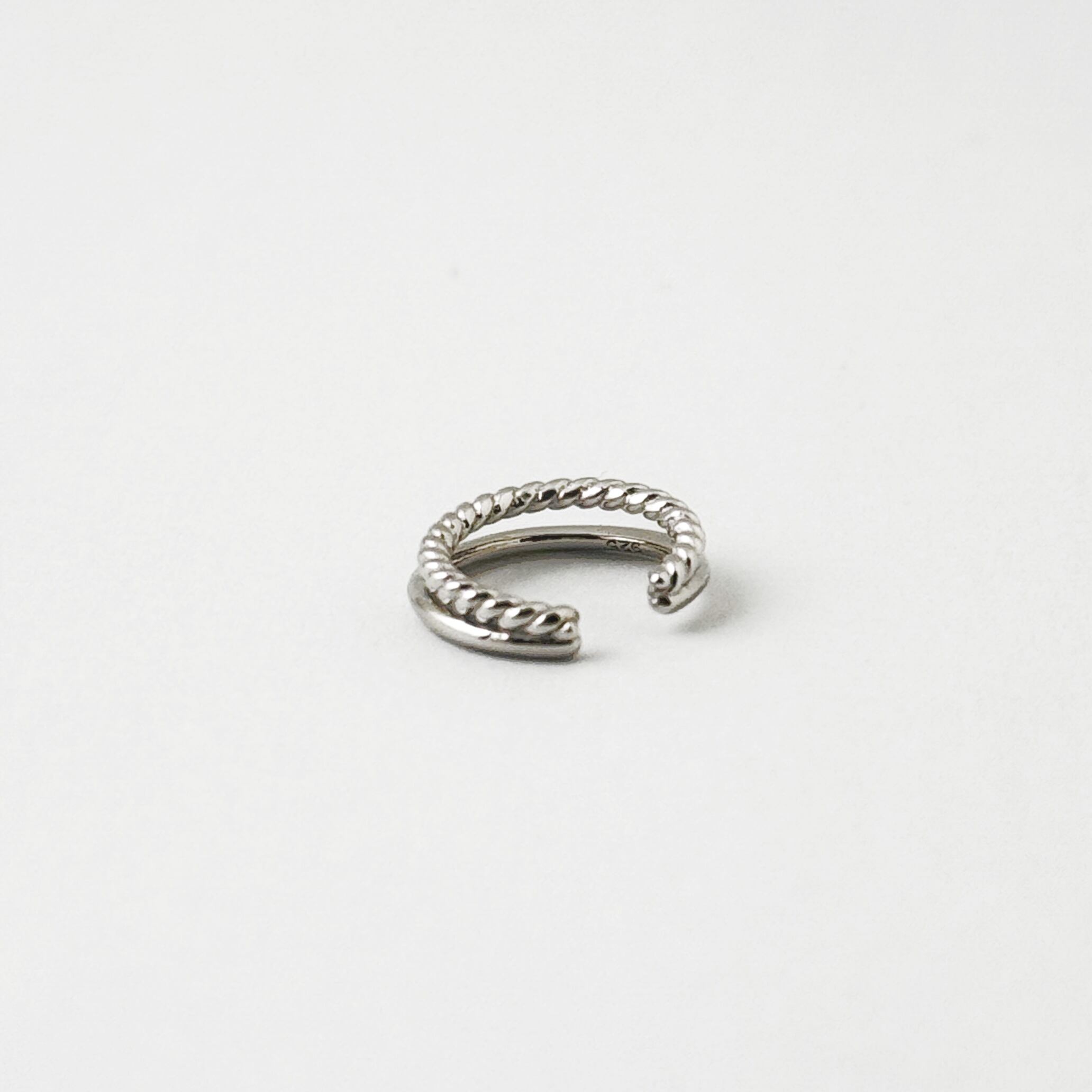 シンプルなラインと、ツイストしたシルバーを二本組み合わせたデザインのイヤーカフ。