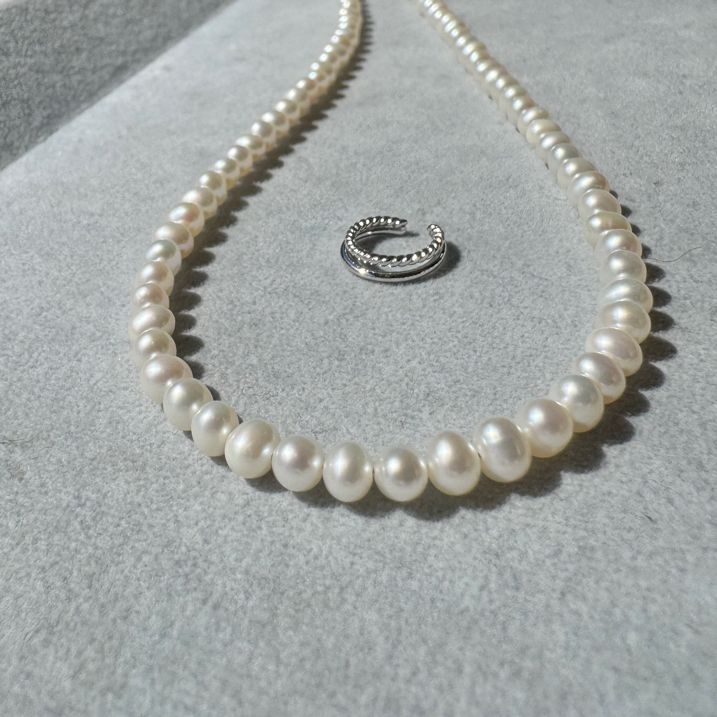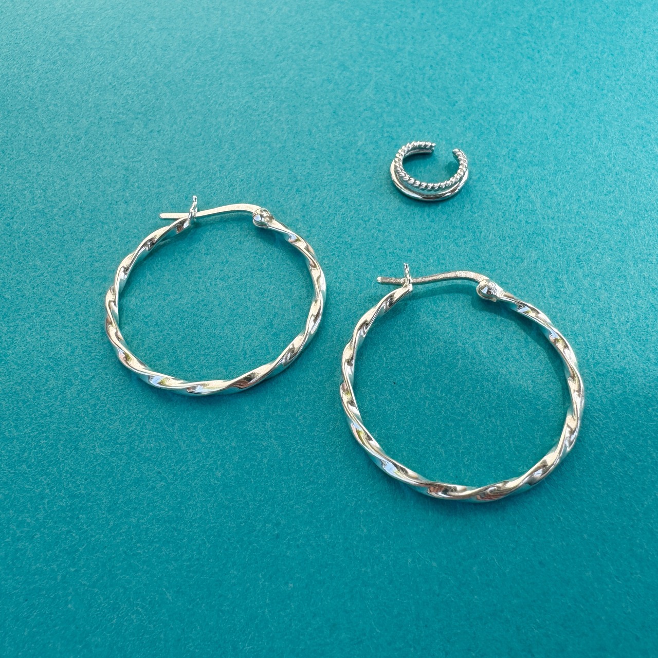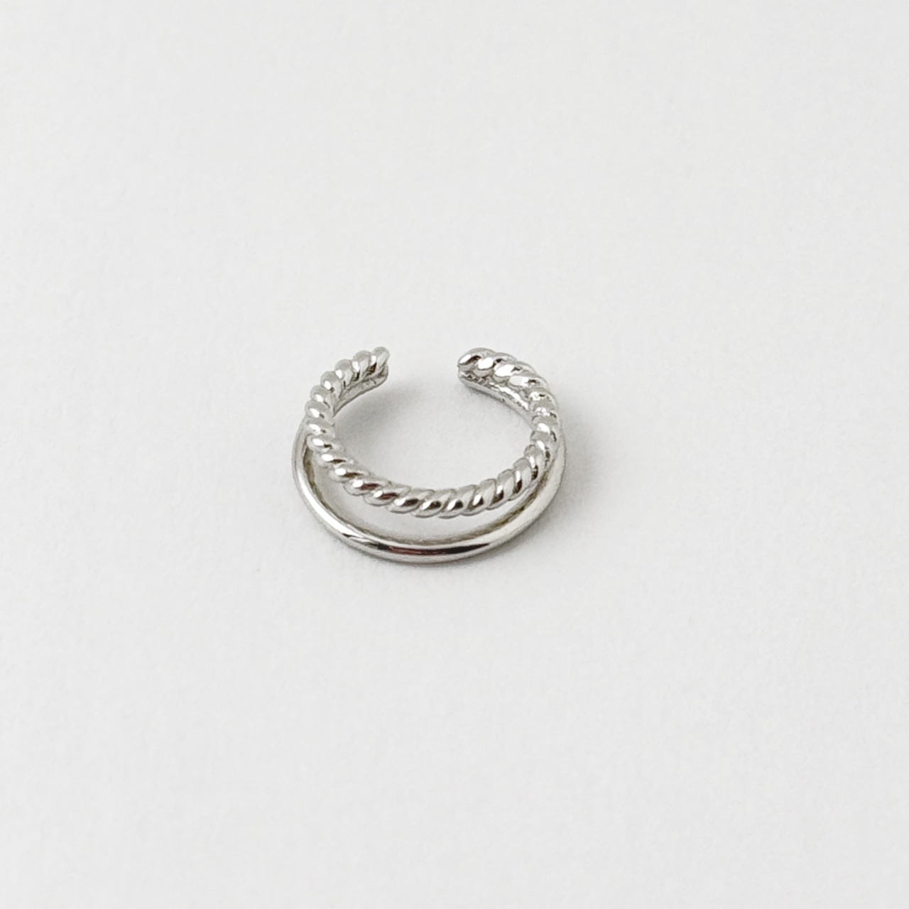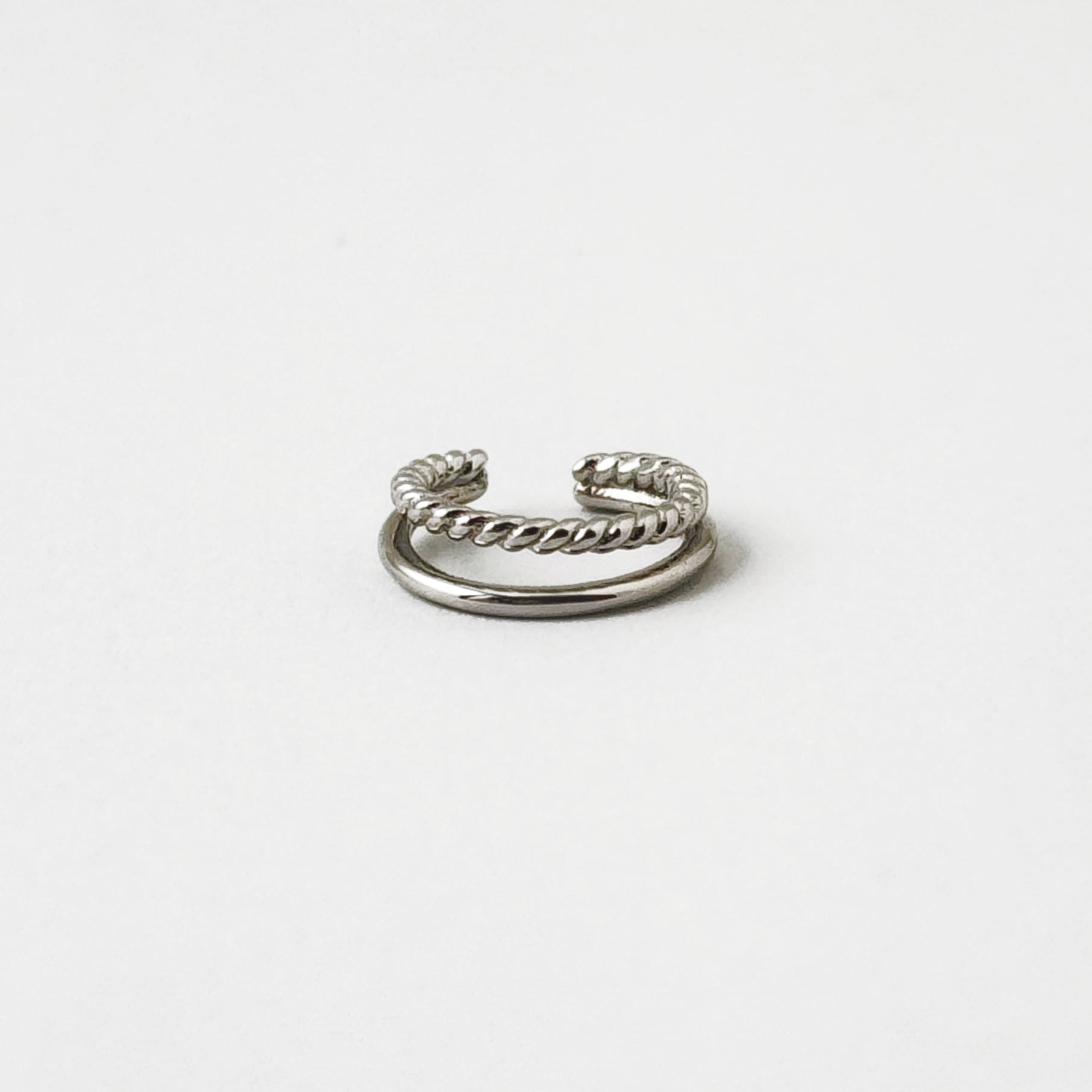 シンプルなラインと、ツイストしたシルバーを二本組み合わせたデザインのイヤーカフ。