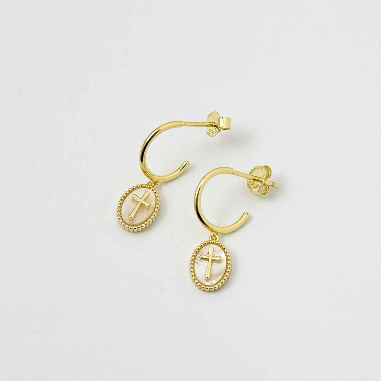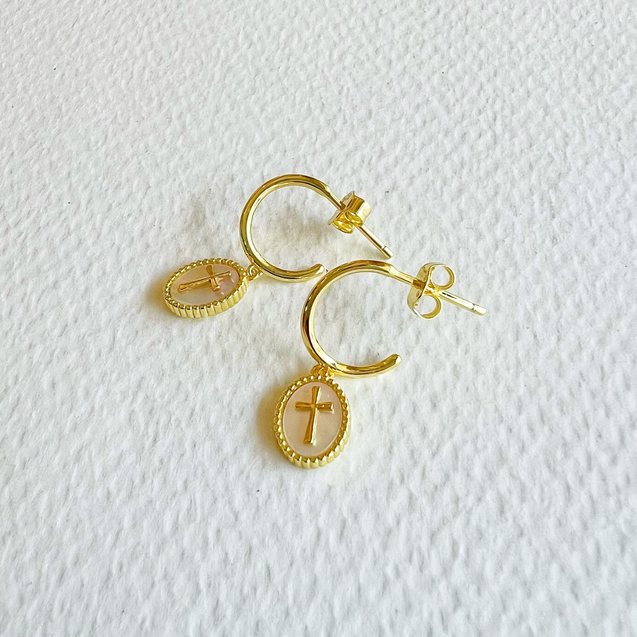 Gold coatingされたハーフフープスタッドピアスに