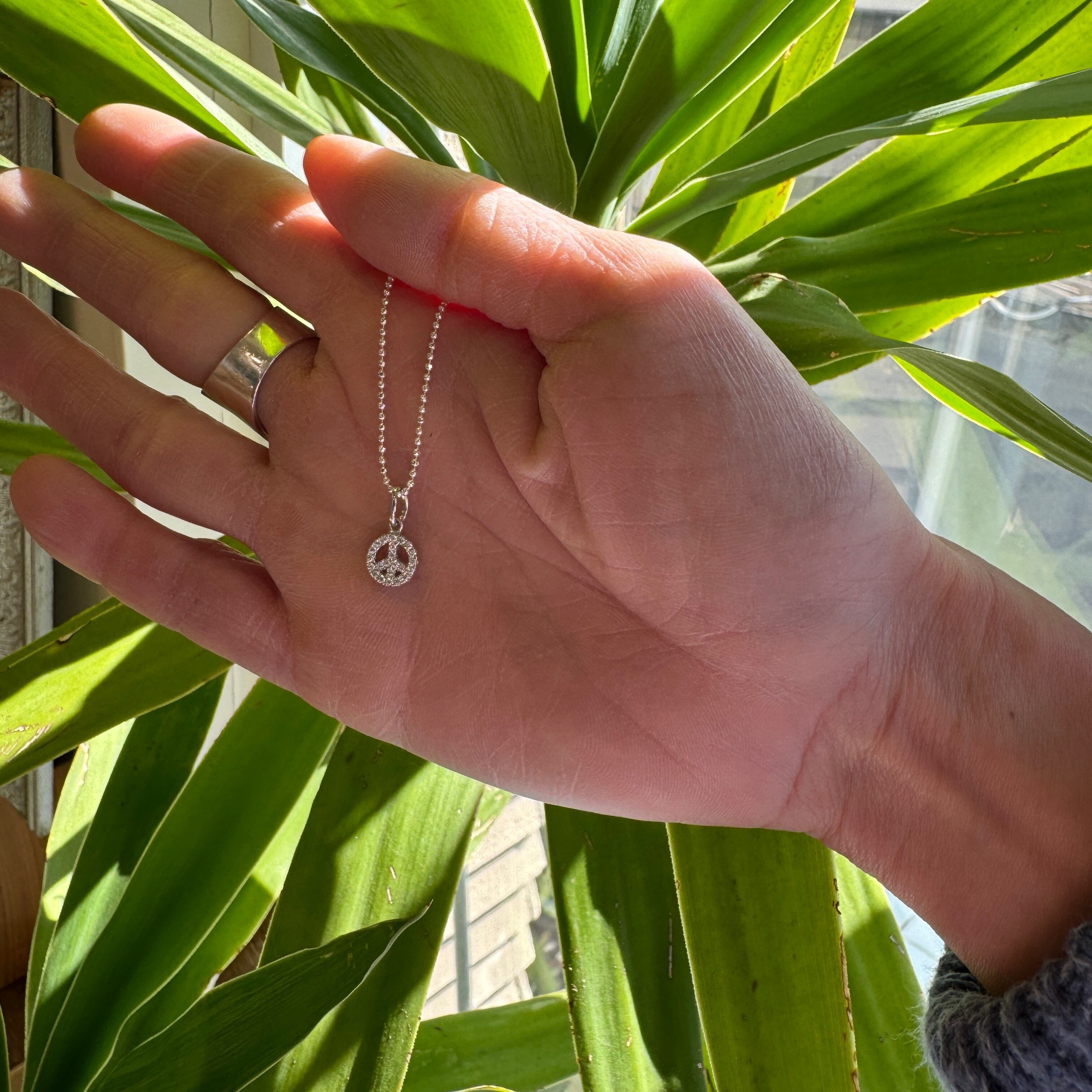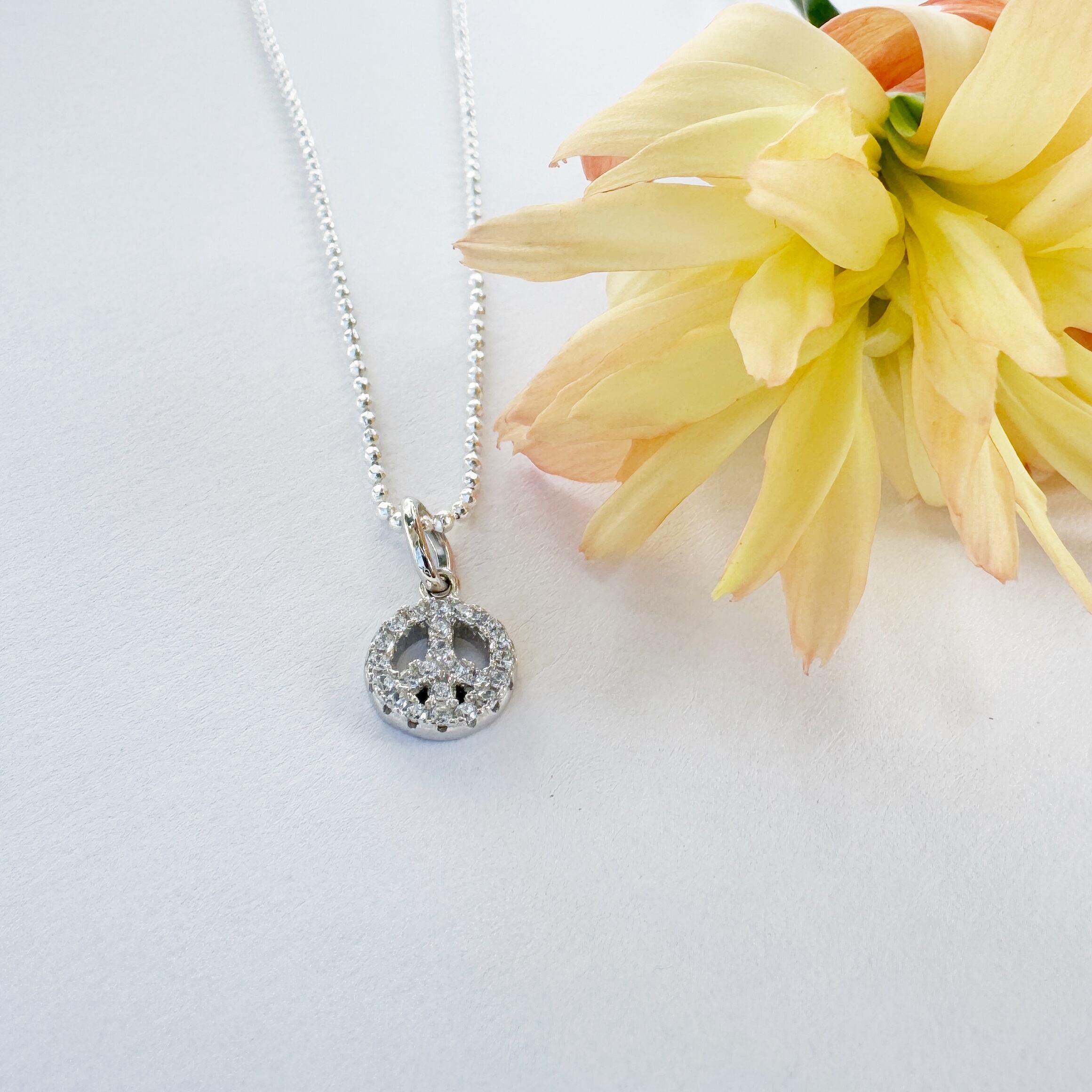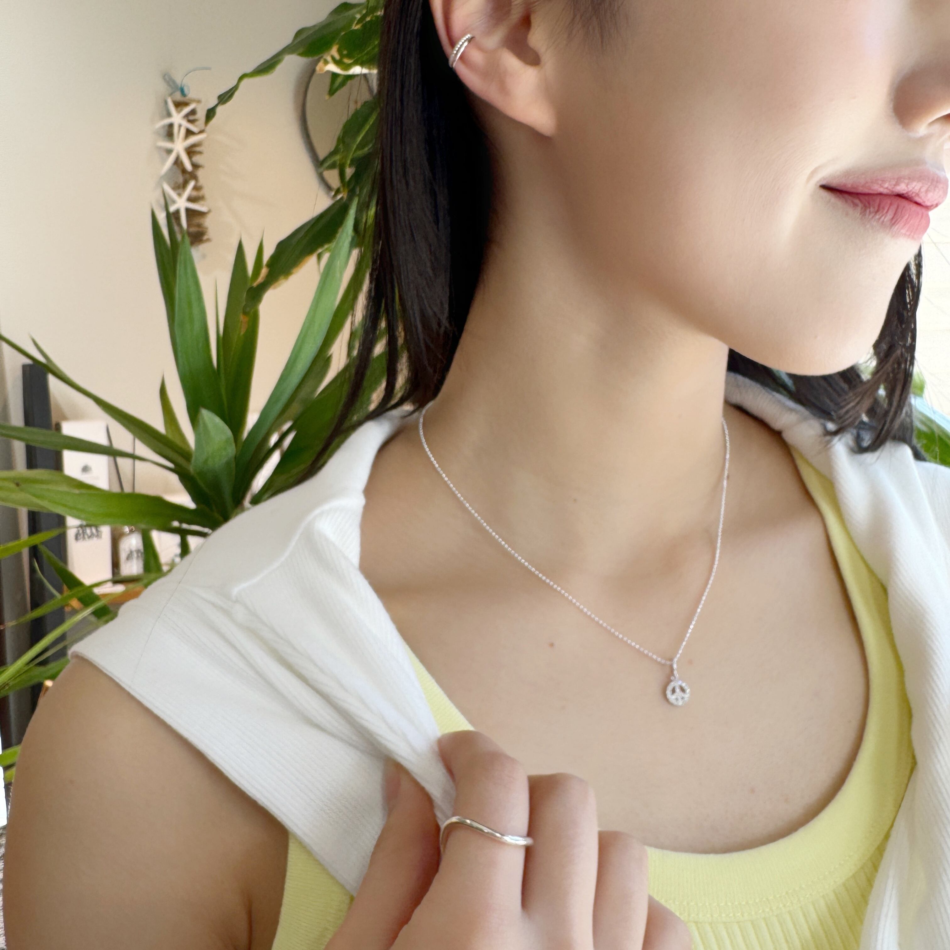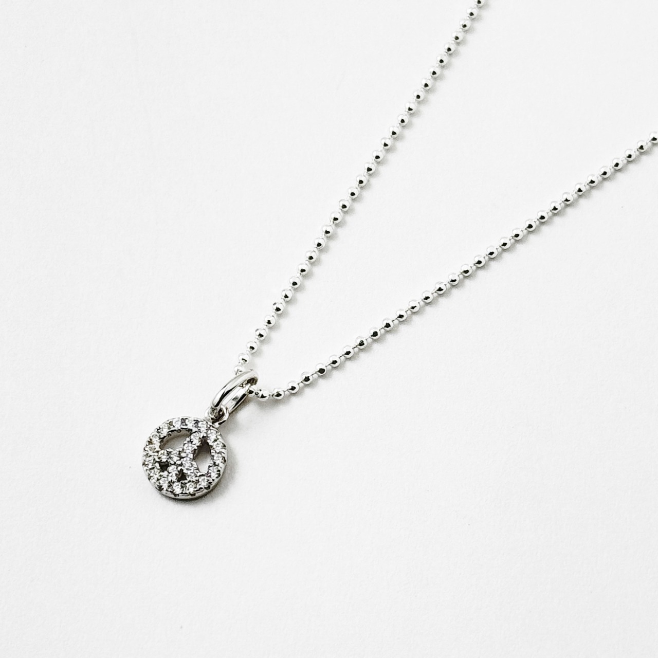 小さなジルコニアを全面に配した平和の象徴、PEACEマーク。