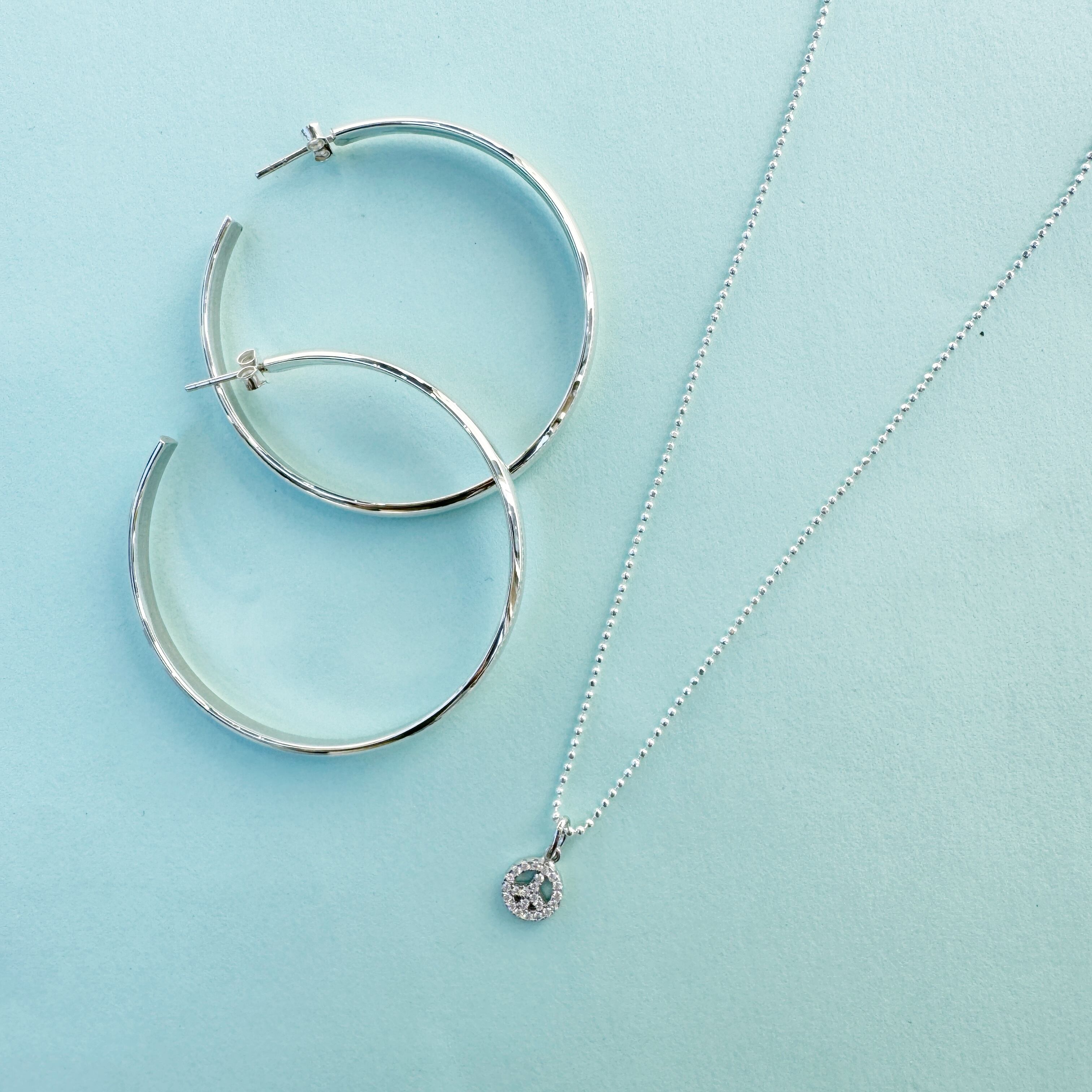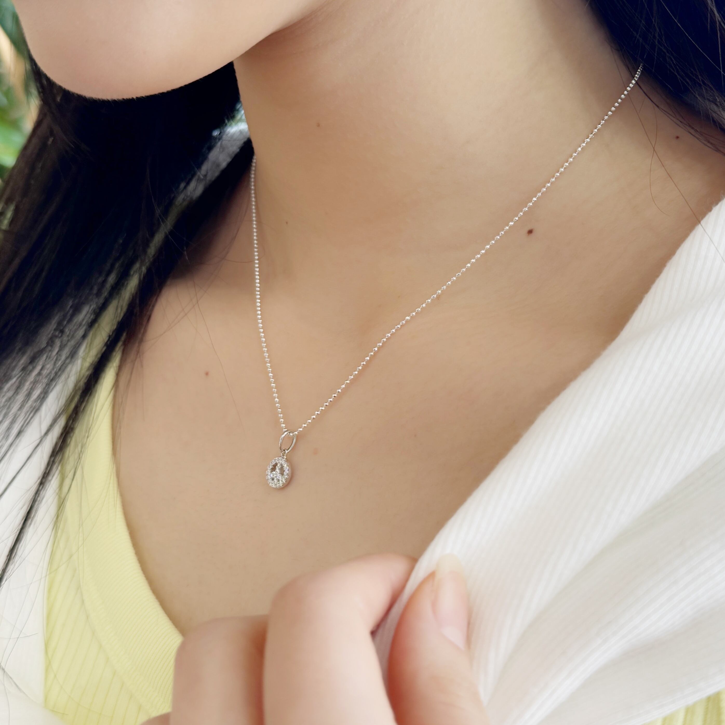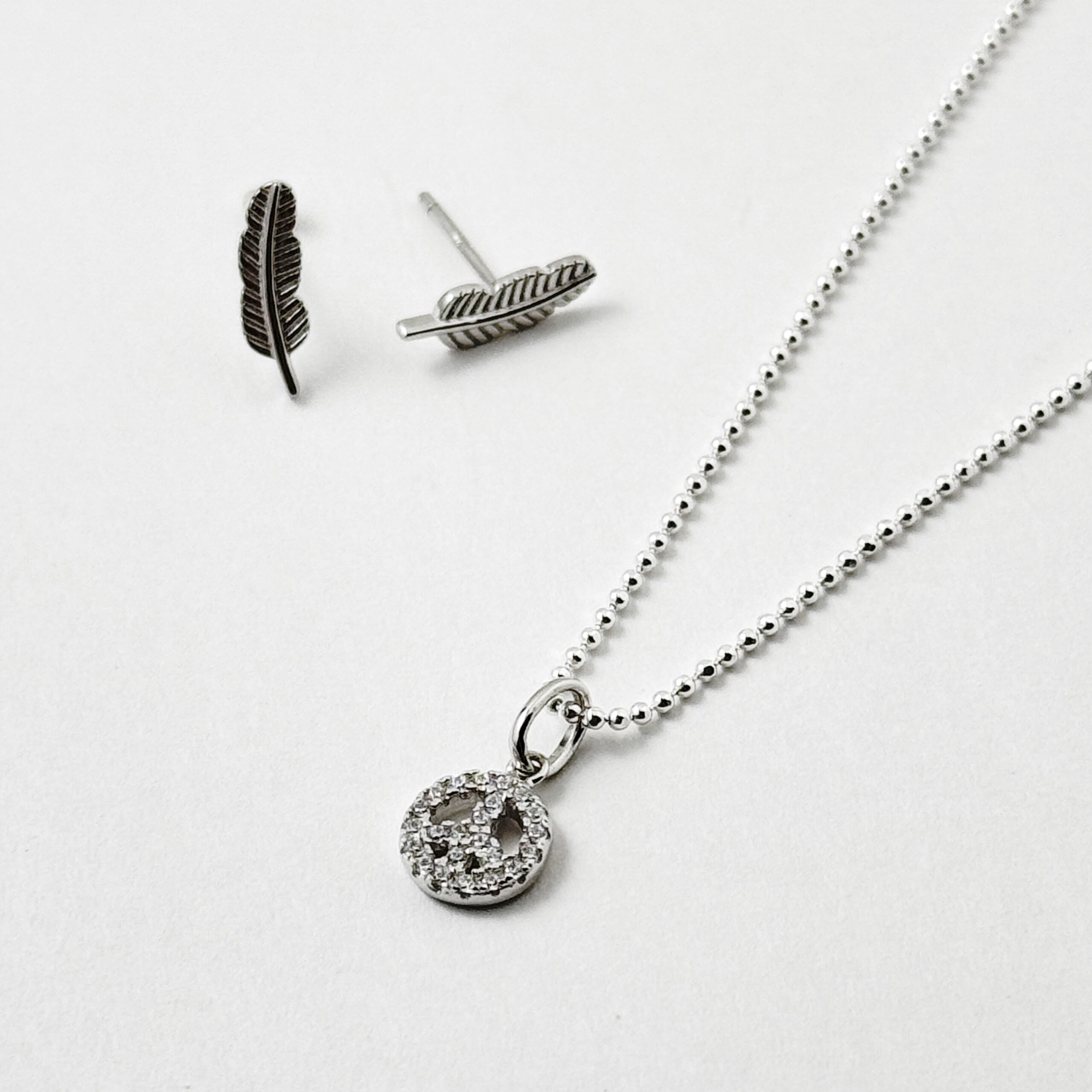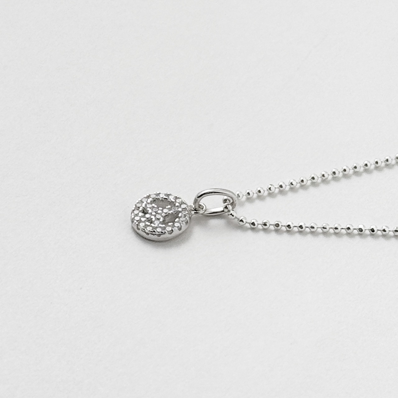 小さなジルコニアを全面に配した平和の象徴、PEACEマーク。