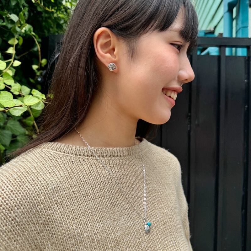 凹凸のあるオメダイは、胸元で存在感を放ちます。