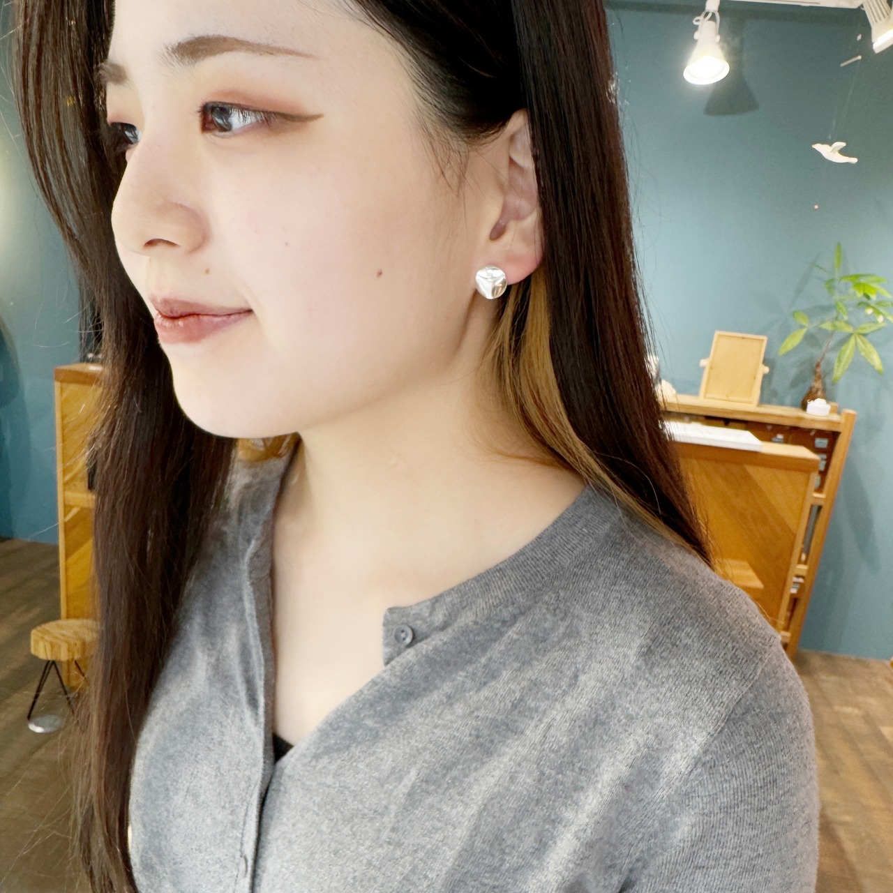 ポスト部分は上部にあるので、耳たぶからチラッと下がる感じでも使っていただけます。