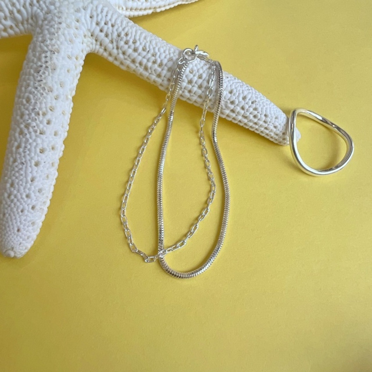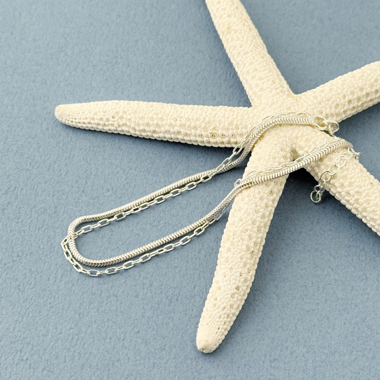 アズキチェーンは透け感のあるチェーンなのでスネークチェーンとの組み合わせによって