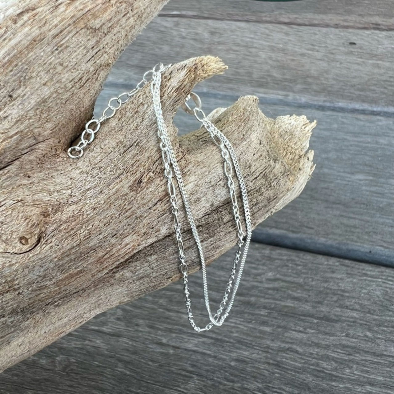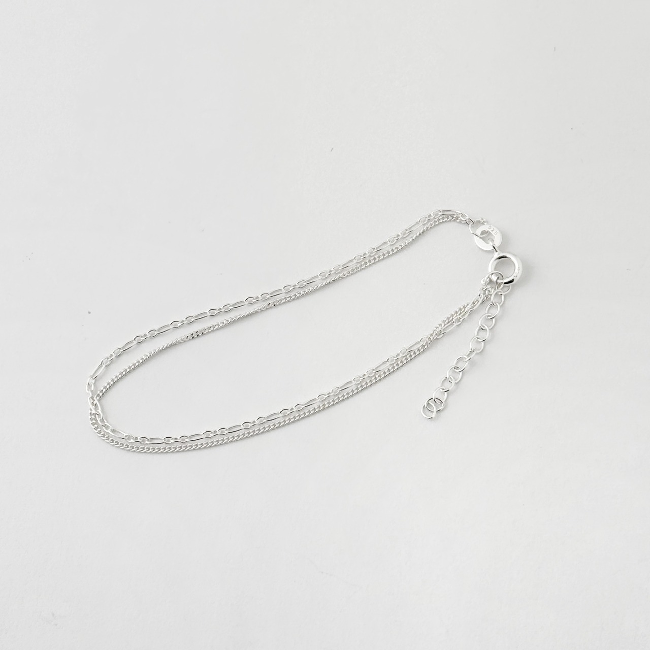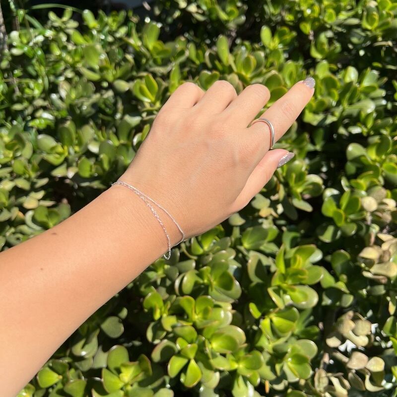 1つのブレスレットなのに2本デザイン違いのチェーンのついたダブルチェーンブレスレット。