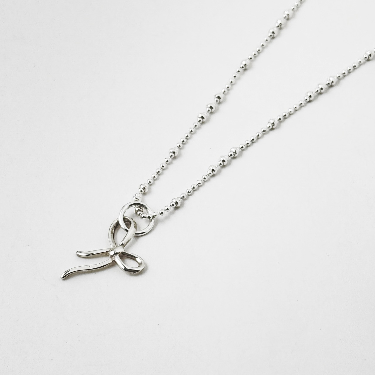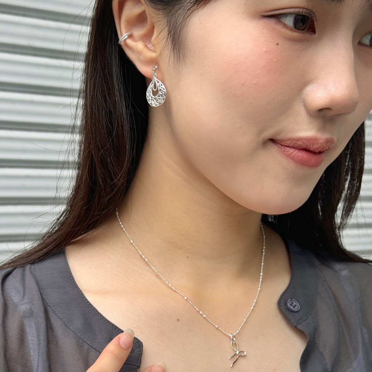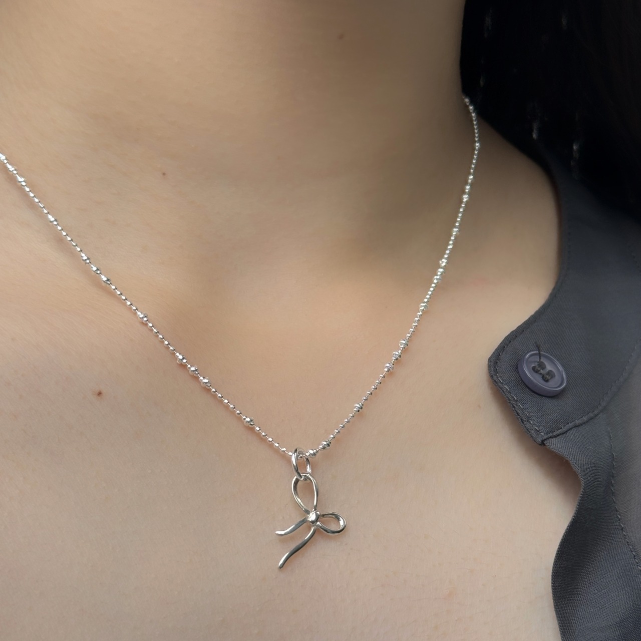 リボンの形が女性らしさを演出しカッボールチェーンが上品な輝きをプラスしてくれます。