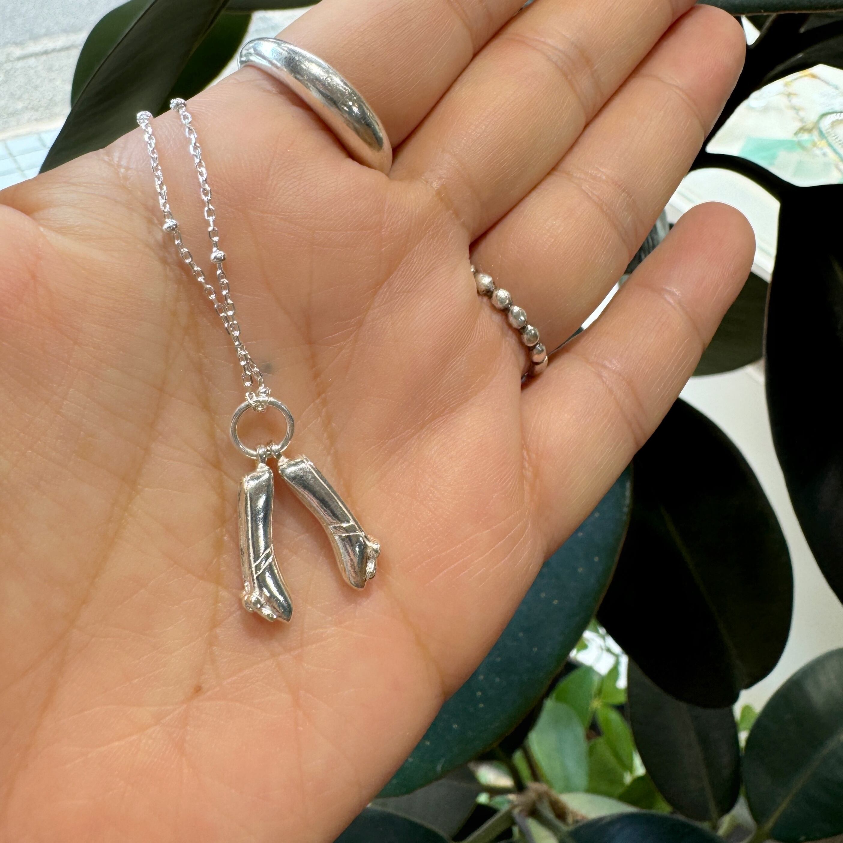 流行りのバレエコアスタイルのシューズネックレス。
