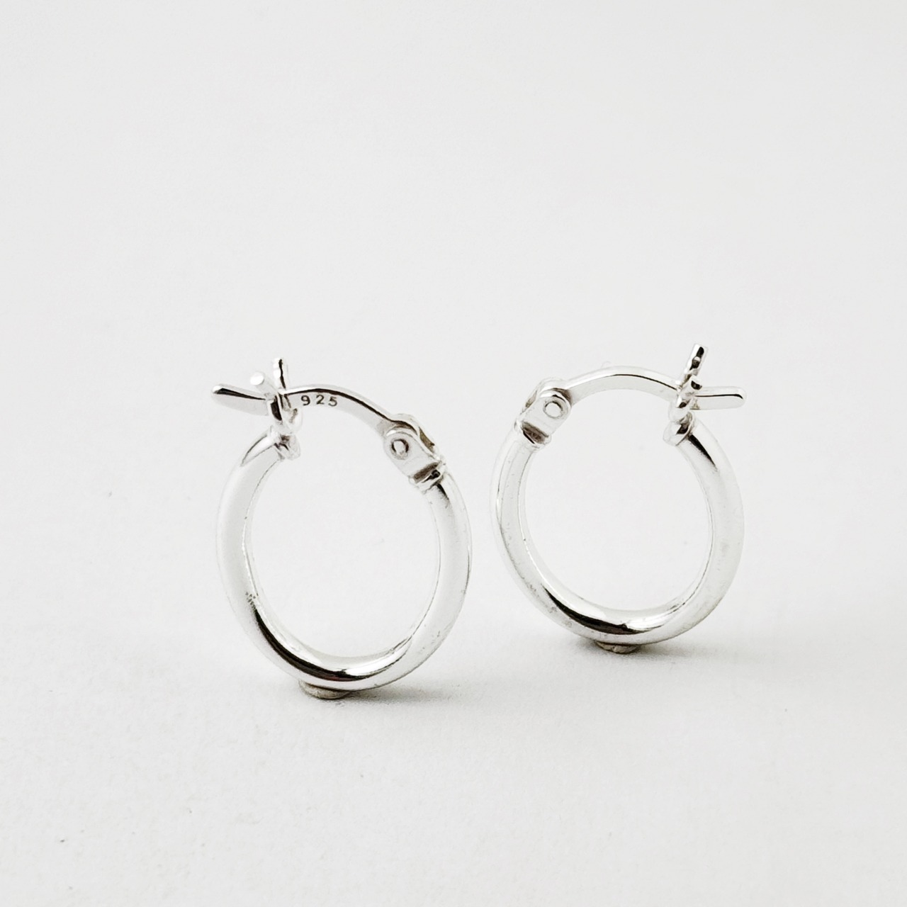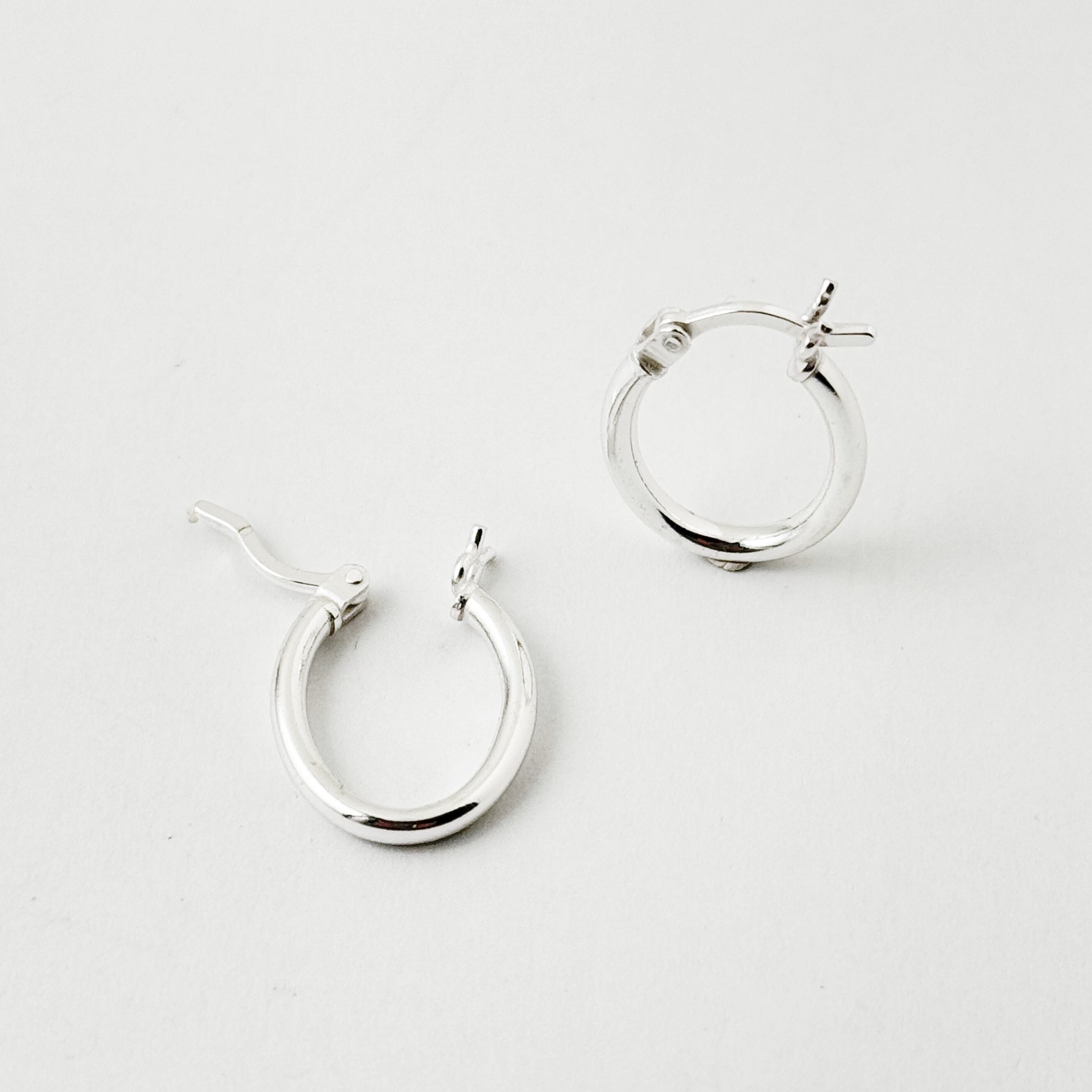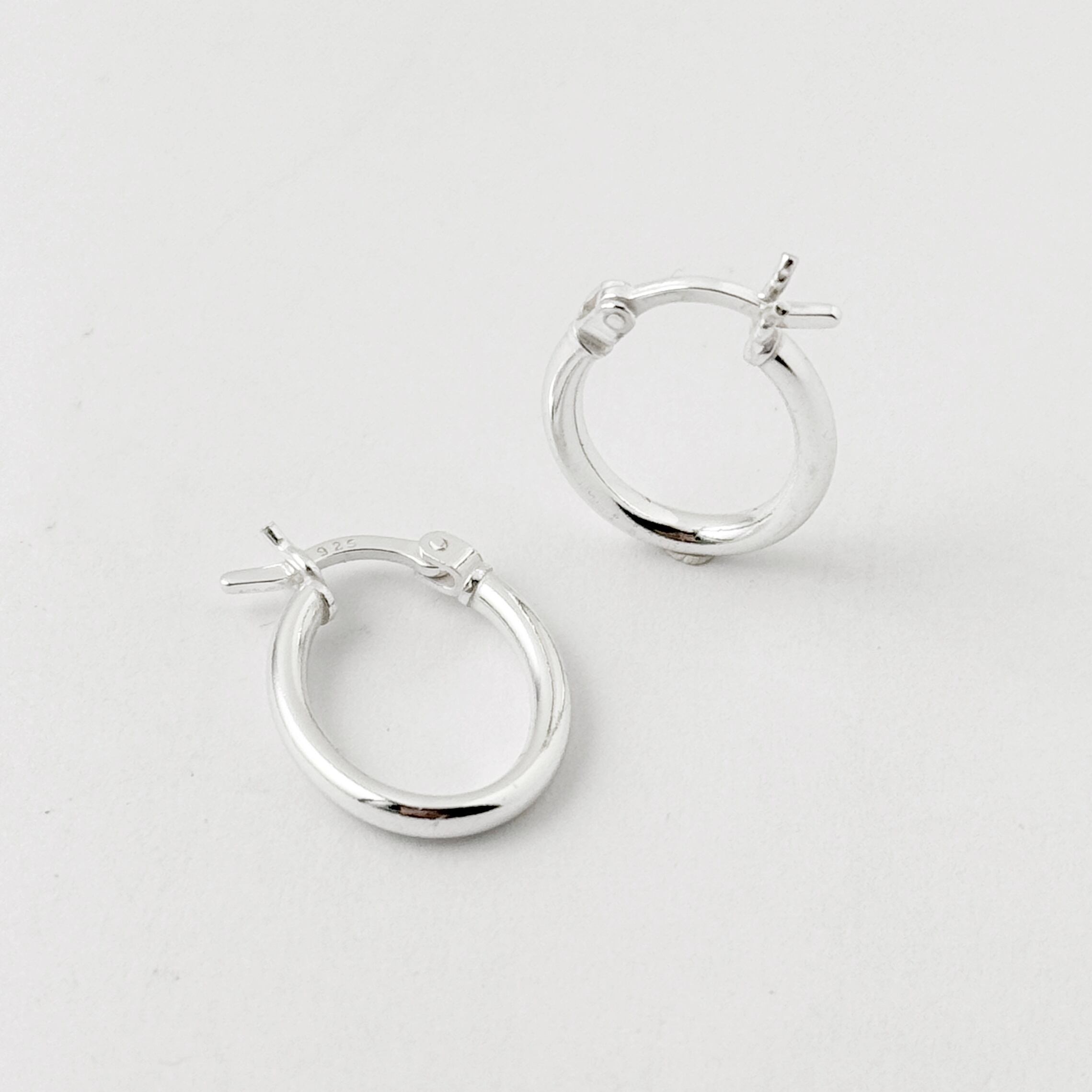 カチッと止めるタイプの小さめのオーバルフープピアスです。