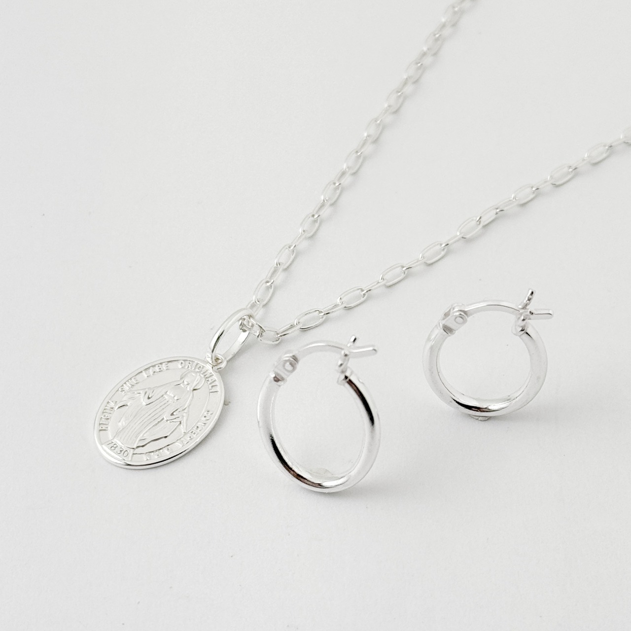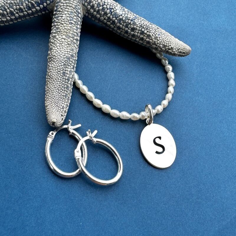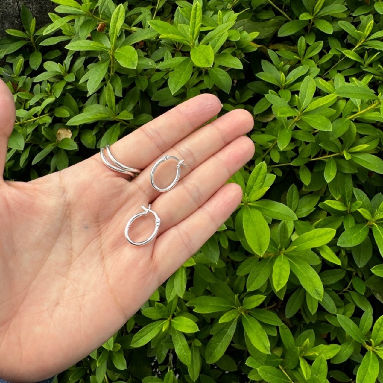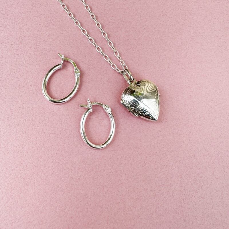 カチッと止めるタイプの小さめのオーバルフープピアスです。