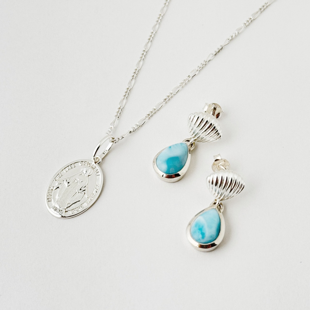 カリブ海に浮かぶドミニカ共和国のみで産出され、海を思わせる石です。正式名称は、『ブルーペクトライト』で、ラリマーは流通名です。